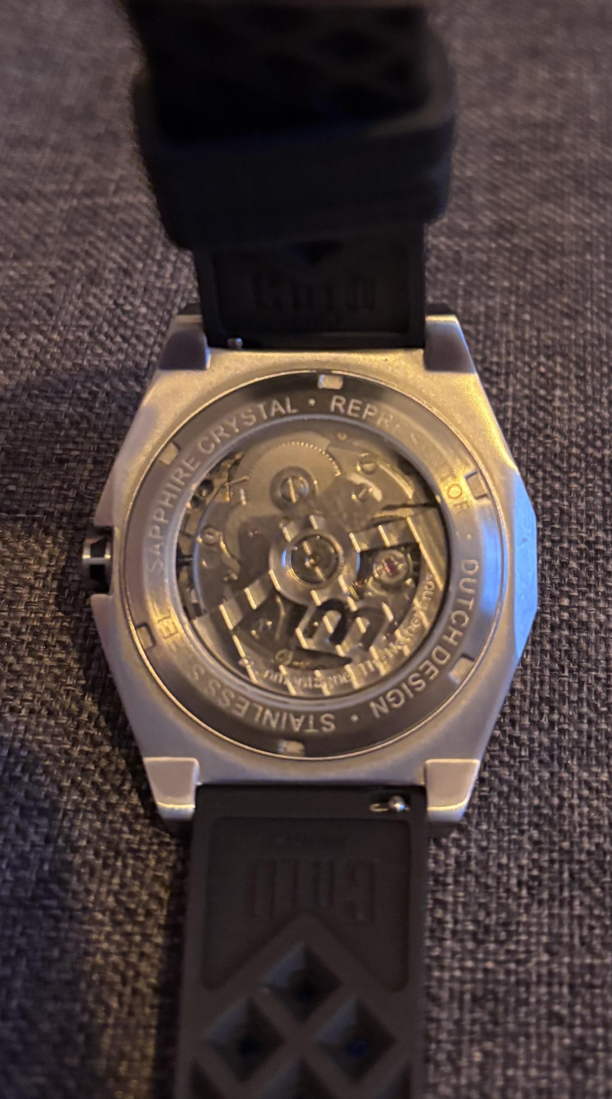 Tot aan de avond voor verzending een foto op de app van het horloge met daarbij de leuke melding dat hij kosteloos de cleane bezel bijvoegd zodat ik wat kan afwisselen.