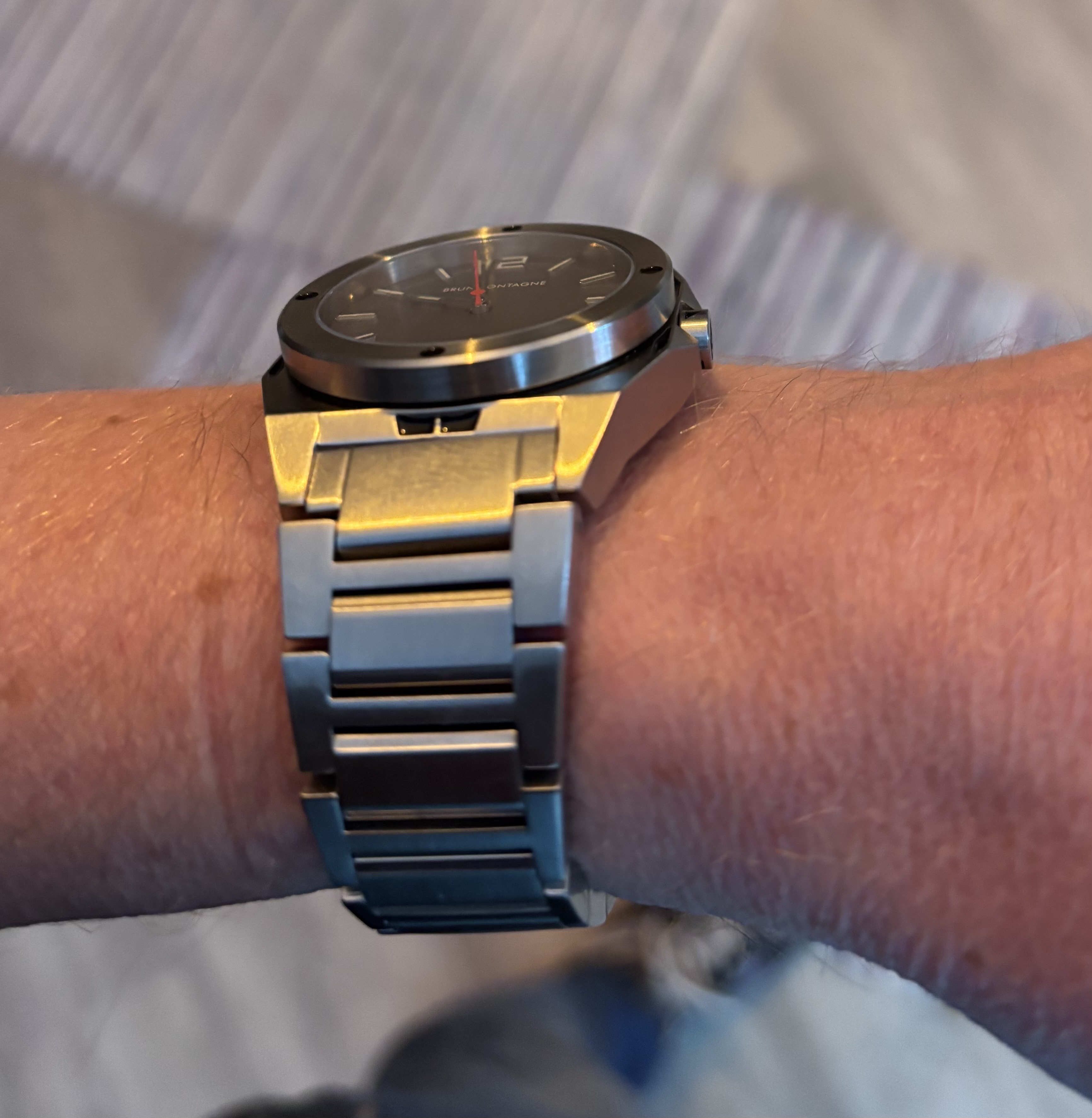 Dat was toch wel een teleurstelling, de op het oog heel mooi afgewerkte gebrushte metalen band valt totaal niet mooi om mijn niet te dikke (ca16 cm) polsen. De endlinks zijn hier te hoekig/dik ik weet niet exact hoe en wat ,maar hier mag in de toekomst nog best wel wat verbeterd worden i.m.o.