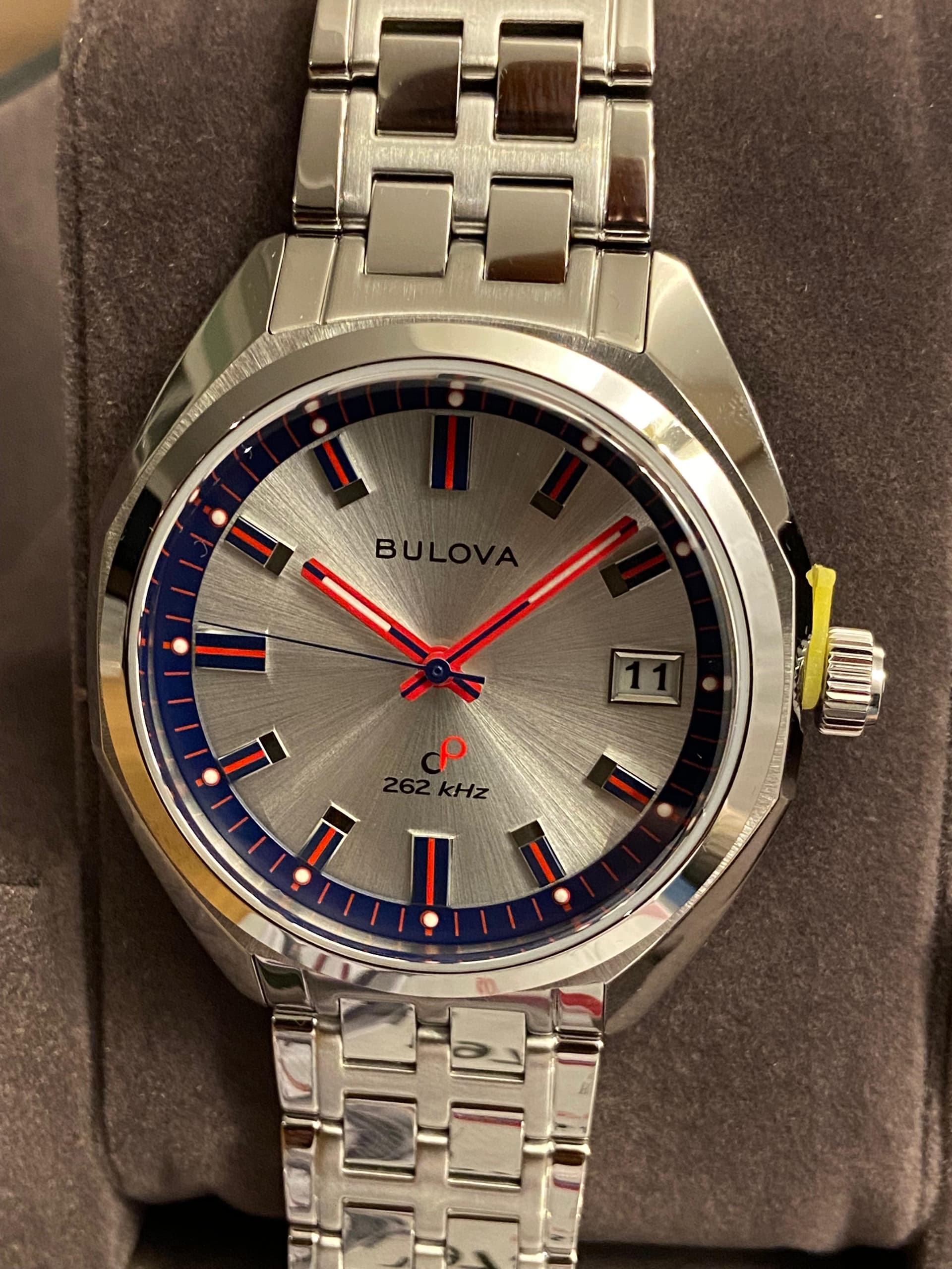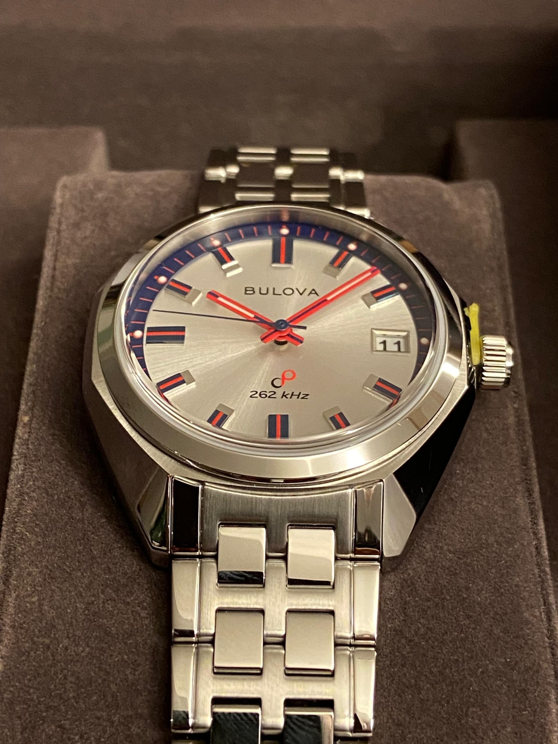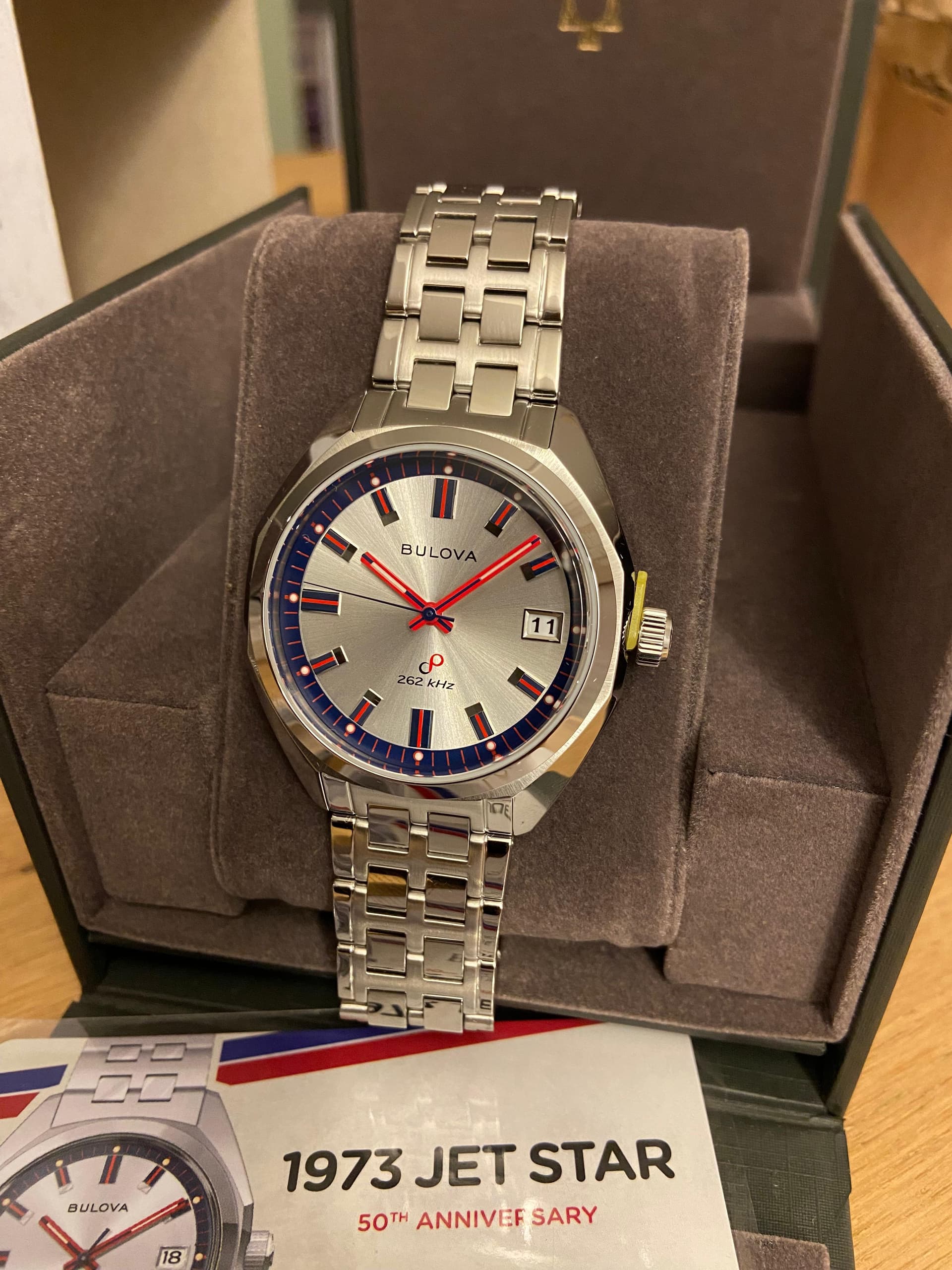 In 2023 kwam de heruitgave van de Bulova Jet Star uit 1973 uit, precies 50 jaar later. Eén van de meest opvallende versies is de 50th Anniversary 96K112 Limited Edition met 262kHz High Precision Quartz uurwerk met sweeping second