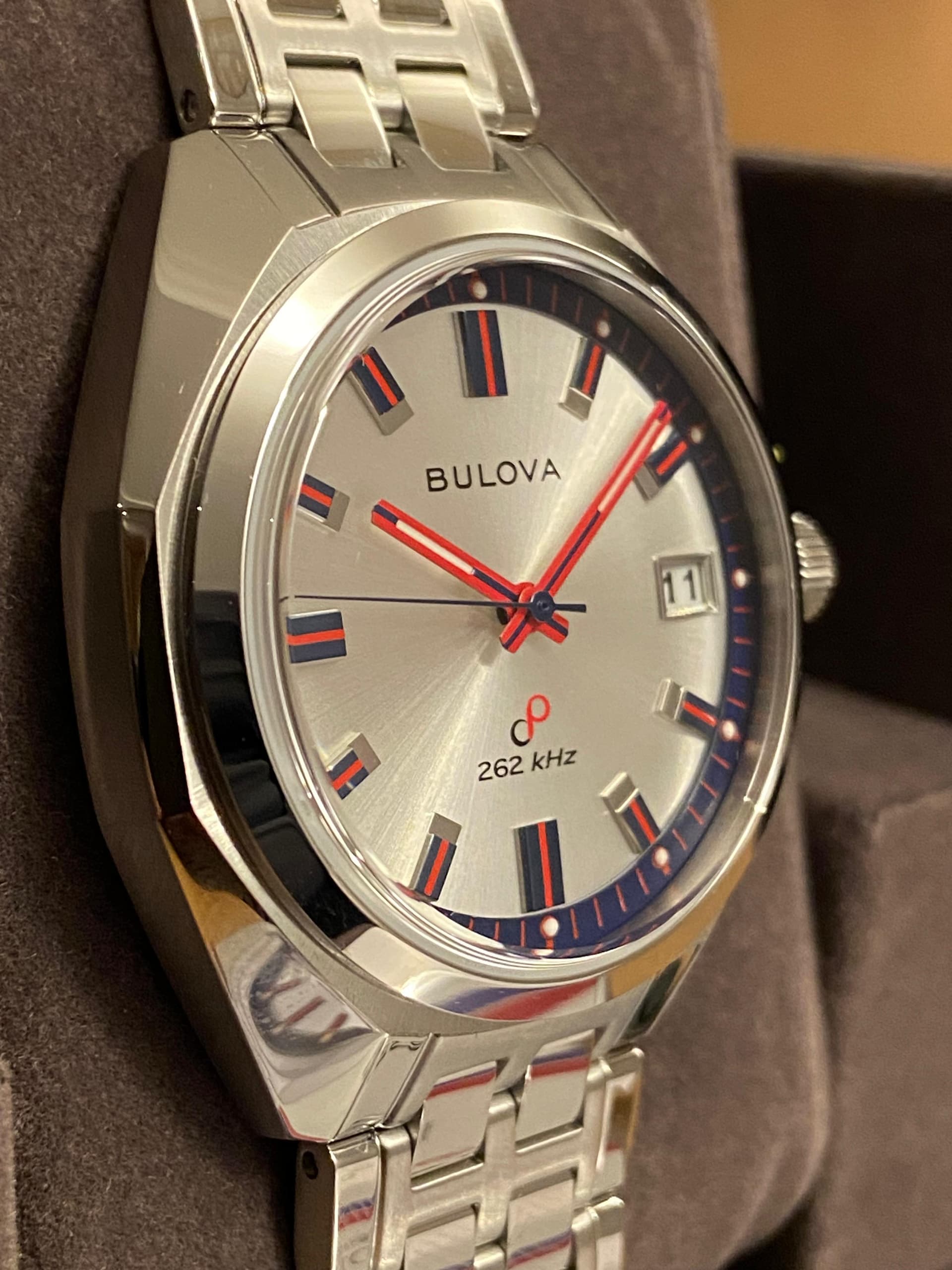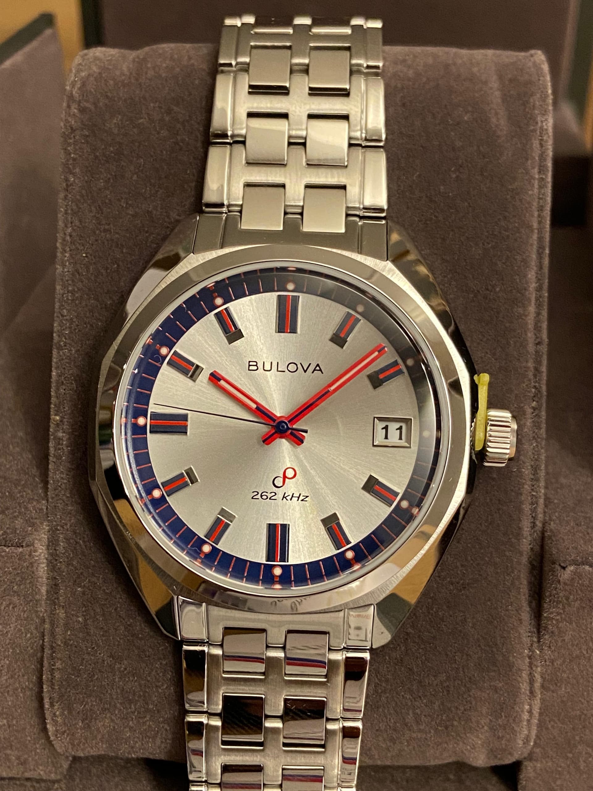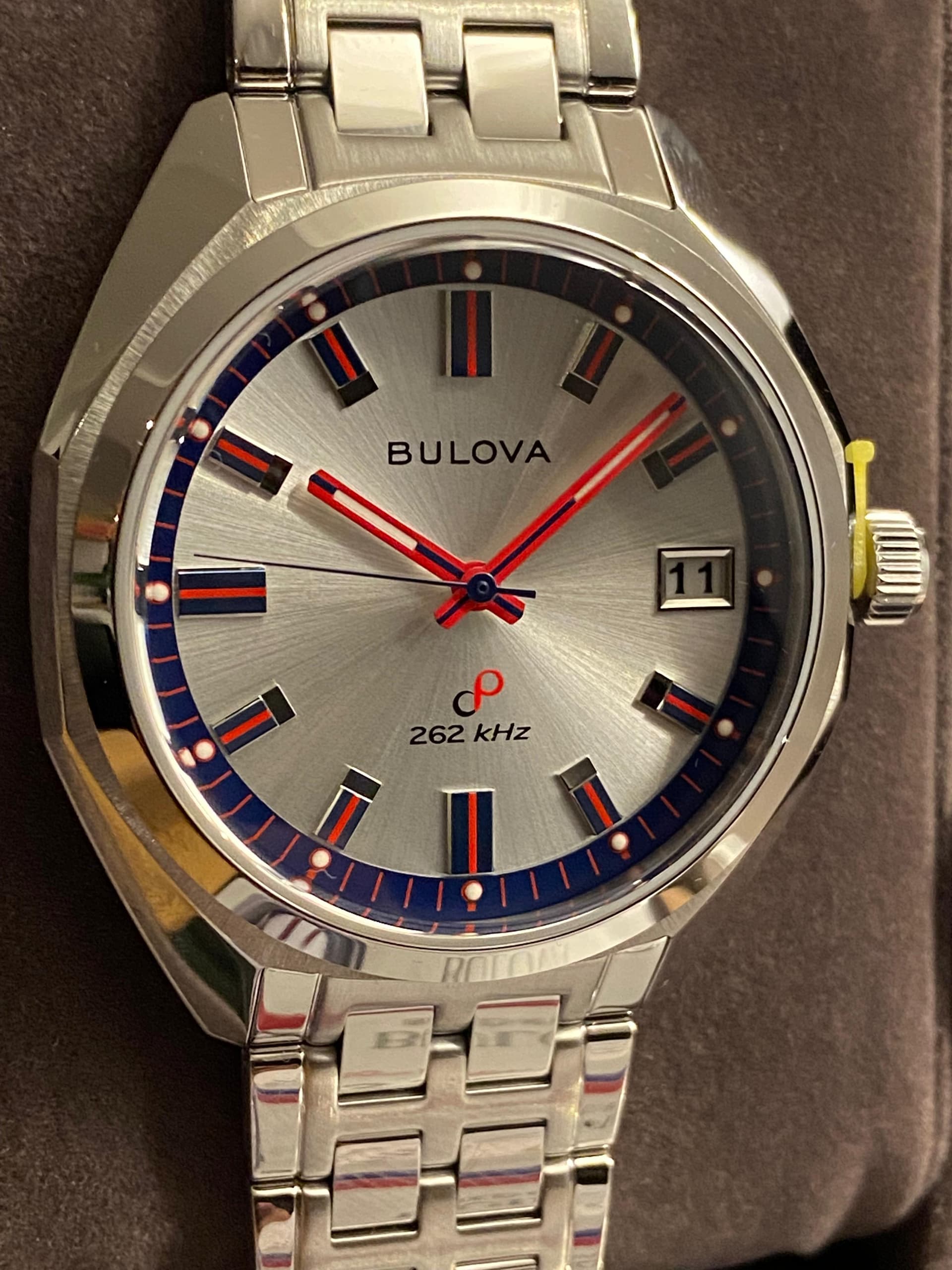 In 2023 kwam de heruitgave van de Bulova Jet Star uit 1973 uit, precies 50 jaar later. Eén van de meest opvallende versies is de 50th Anniversary 96K112 Limited Edition met 262kHz High Precision Quartz uurwerk met sweeping second