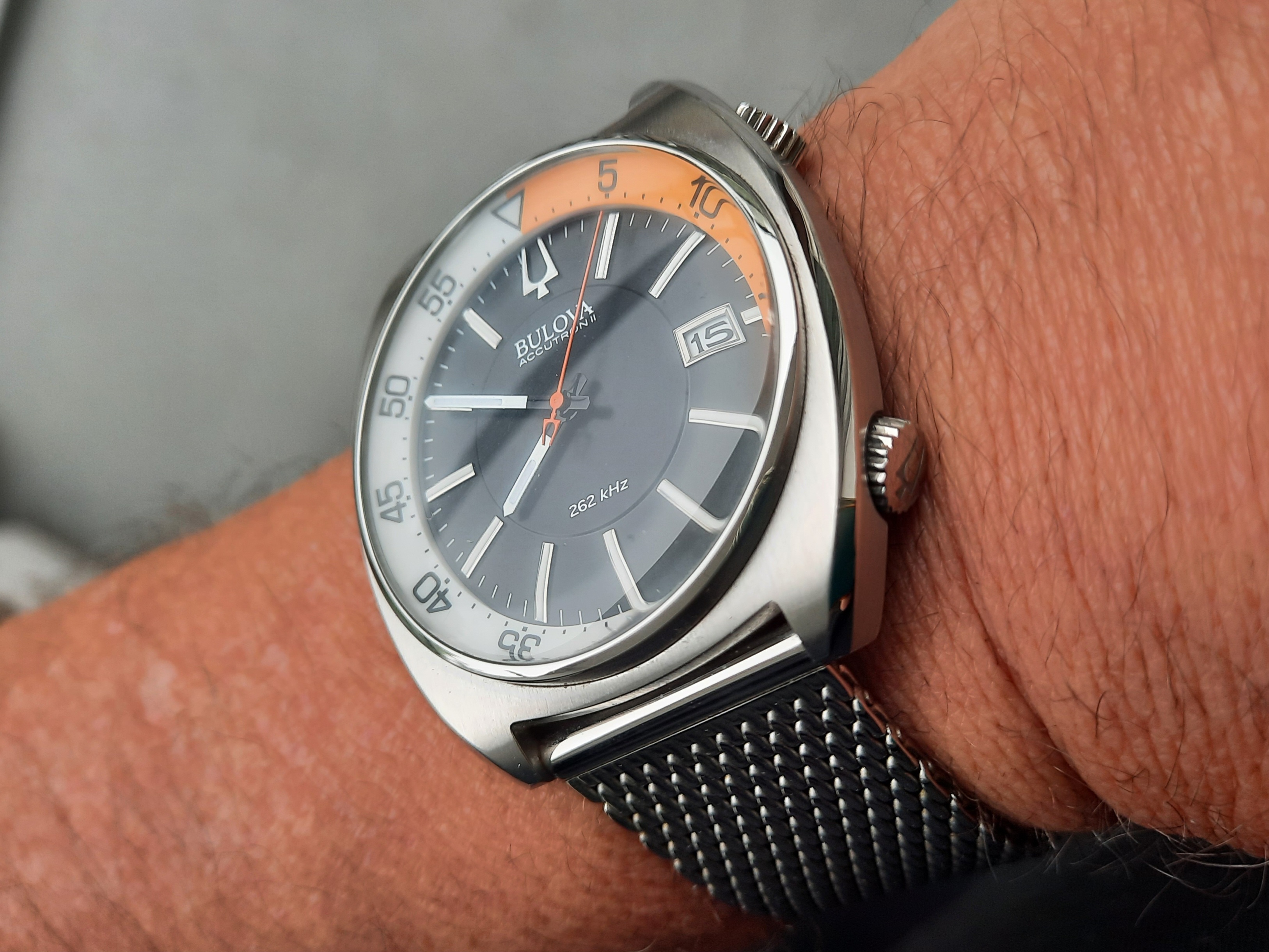 Accutron met 262kHz uurwerk altijd tof. Gefeliciteerd! Ook één van de weinige secondewijzers met een logo die ik wel cool vind.