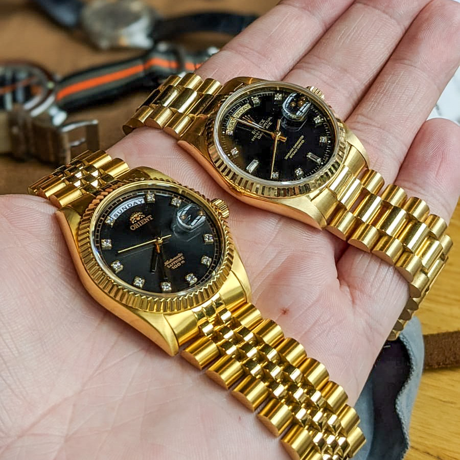 - Hou je leuke Orient Daydaye nooit naast de echte Rolex Daydate