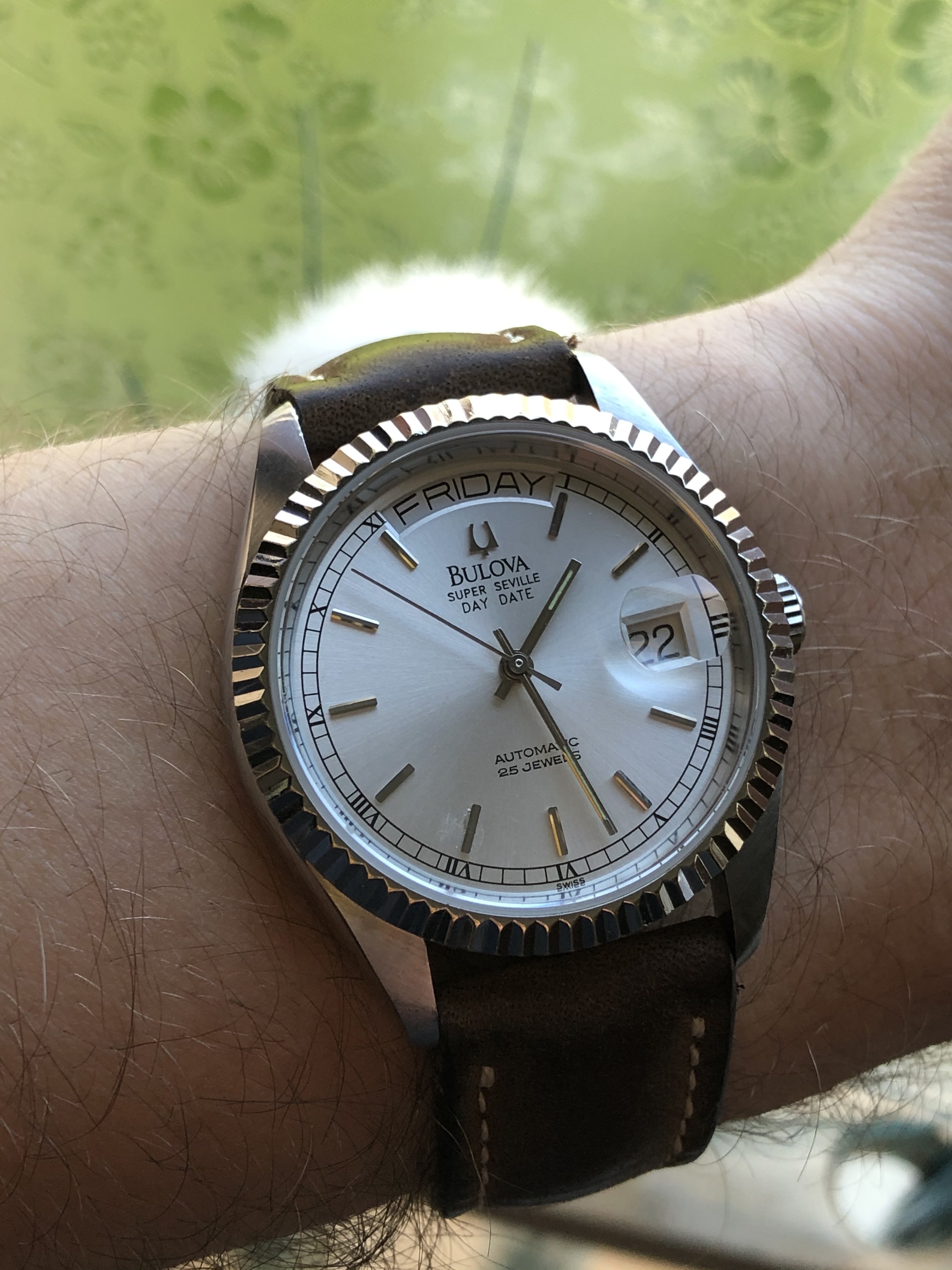 Ik ben erg blij dat ik voor een hele schappelijke prijs nu de eigenaar ben van een Bulova Super Seville. In alle eerlijkheid had ik dat nooit verwacht, gezien de hoge prijzen die sommige hier op het forum en op het web voor hun gouden, met ‘diamantjes’ ingezette wijzerplaat en kitscherige uitstraling vragen (sorry).