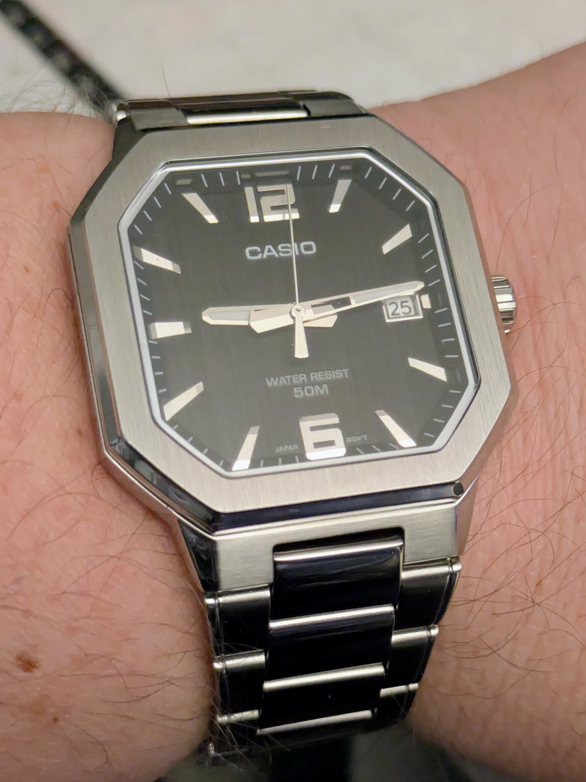 In een opwelling gekocht. Een heuse quartz shitter met gevouwen links maar ik vind hem eigenlijk gewoon hartstikke leuk. En de wijzer tikt ook nog eens netjes op de indices.