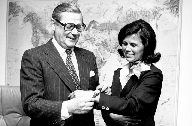 “De beslissing werd genomen door de toenmalige voorzitter van de raad, Pehr G. Gyllenhammar. Op onderstaande zwart-witfoto overhandigt de heer Blenner, hoofd Communicatie en Public Relations, een horloge aan een van de medewerkers