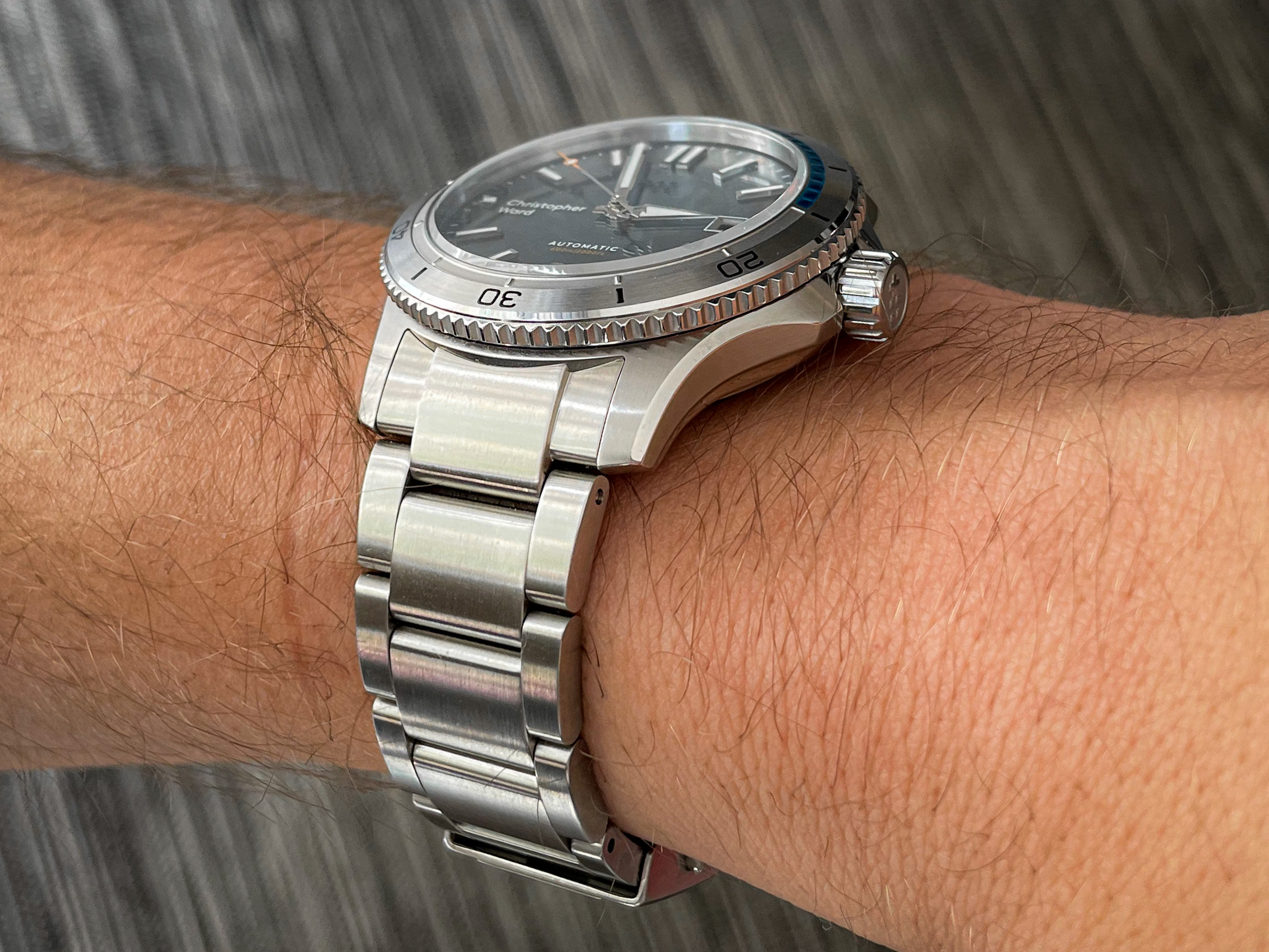Met zijn 40mm voor mijn polsen een uitdaging, de lugs zijn niet erg kort. Maar na veel video’s te hebben bekeken durfde ik het aan. Vooral omdat de lugs mooi naar beneden afronden en zo op bijna iedere pols mooi staat.