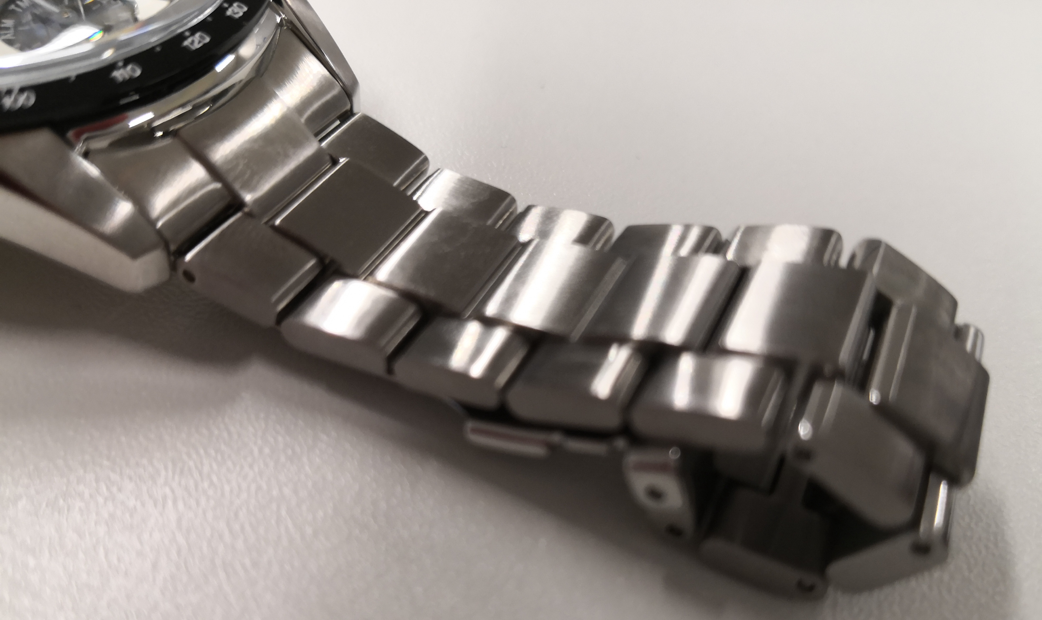Toen ik hem in mijn handen had vond ik dat hij prettig aanvoelde. Niet zwaar. De brushed band en de schakels voelden heel fijn aan. Plastic eraf gehaald. Nadere inspectie van de band leverde alleen maar glimlachjes op. Solid endlinks altijd goed. Oh, wat was dit goed gedaan zeg.