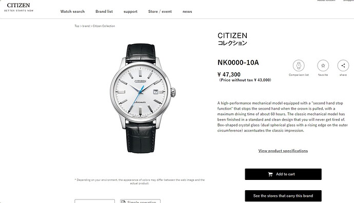 Het gemak waarmee je de bijzondere Japanse horloges kunt importeren smaakte naar meer. Na de mooie Citizen BL5594-59A, de grandioze Citizen NB1050-59A en de toppert Casio OCEANUS OCW-S100-1AJF bleef ik maar hangen op de Japanse Citizen-site.