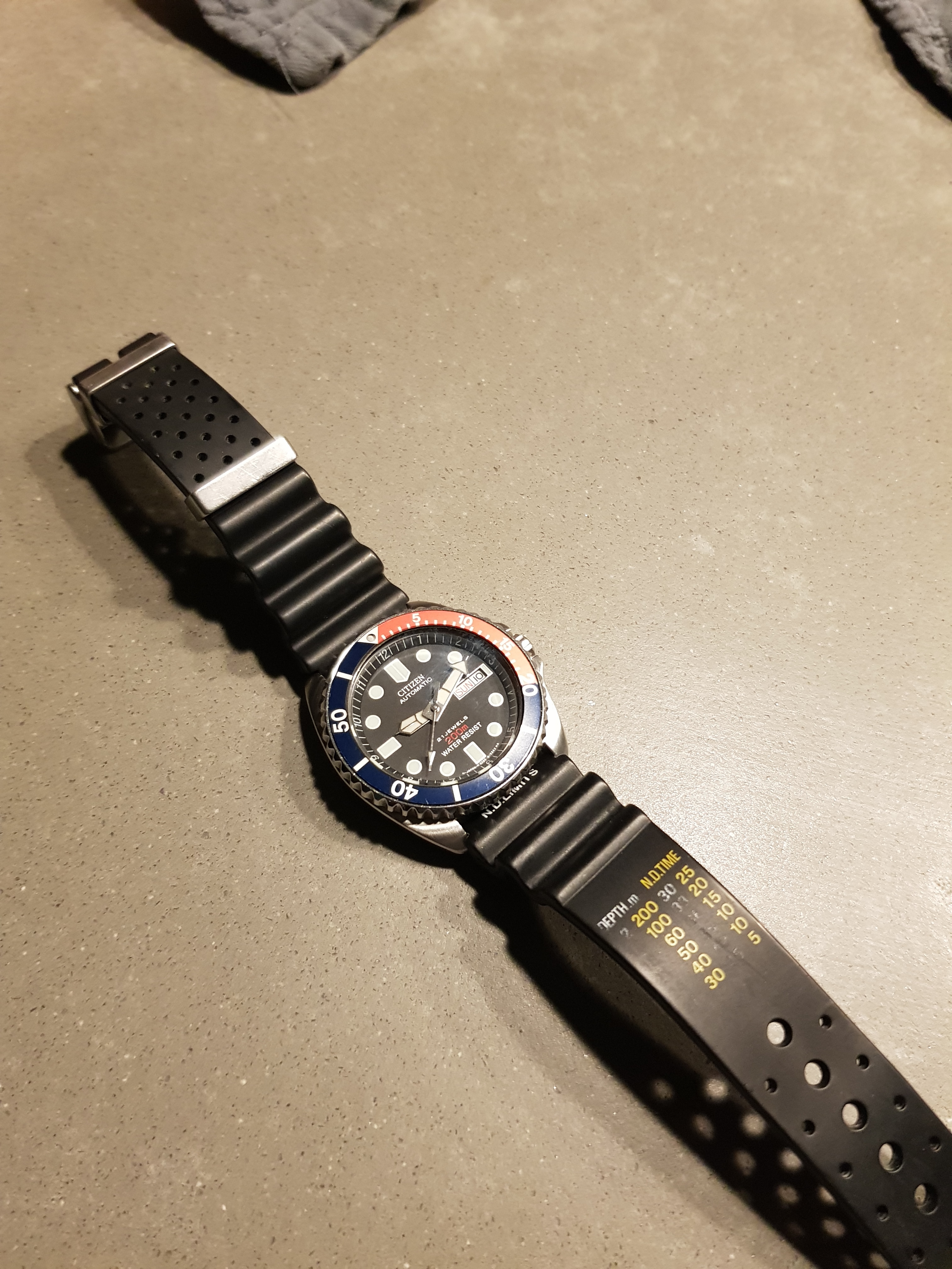 Aangezien ik polsjes heb zocht ik een midsize duiker die naast mijn Seiko SKX013 goed zou staan. Er stonden er 2 op mijn verlanglijst: de Citizen NY2300 en de Seiko Mini Turtle. Omdat ik een beetje bang ben voor de 42mm van de Mini Turtle is het de Citizen geworden. Deze kwam toevallig op mijn pad door een reactie van @Mas in een ander zoektopic. Berichtje gestuurd en hij wilde wel verkopen. Erg blij mee, want ze zijn zeldzaam geworden deze dingen. Na een leuke deal hier dus mijn NA: