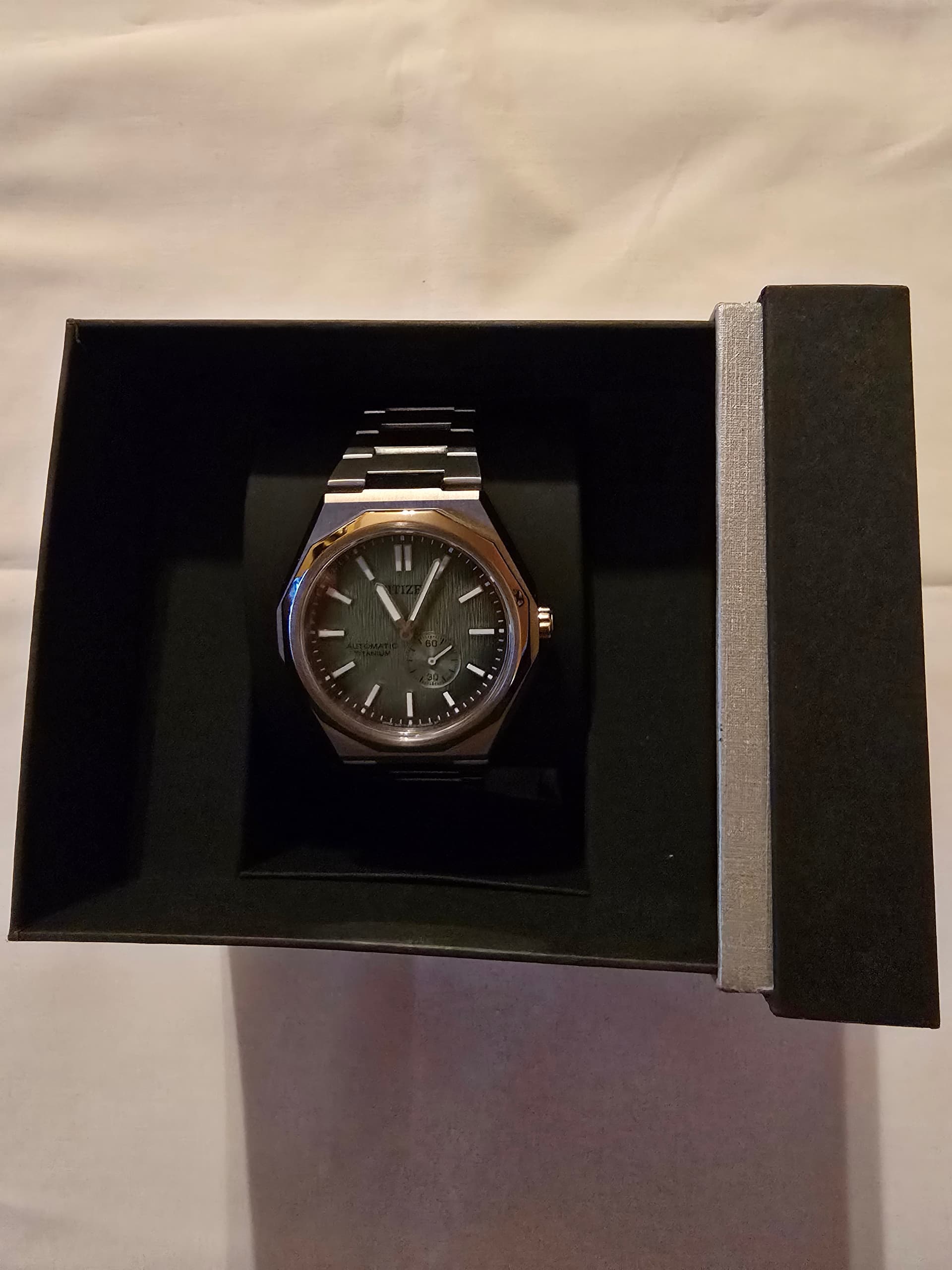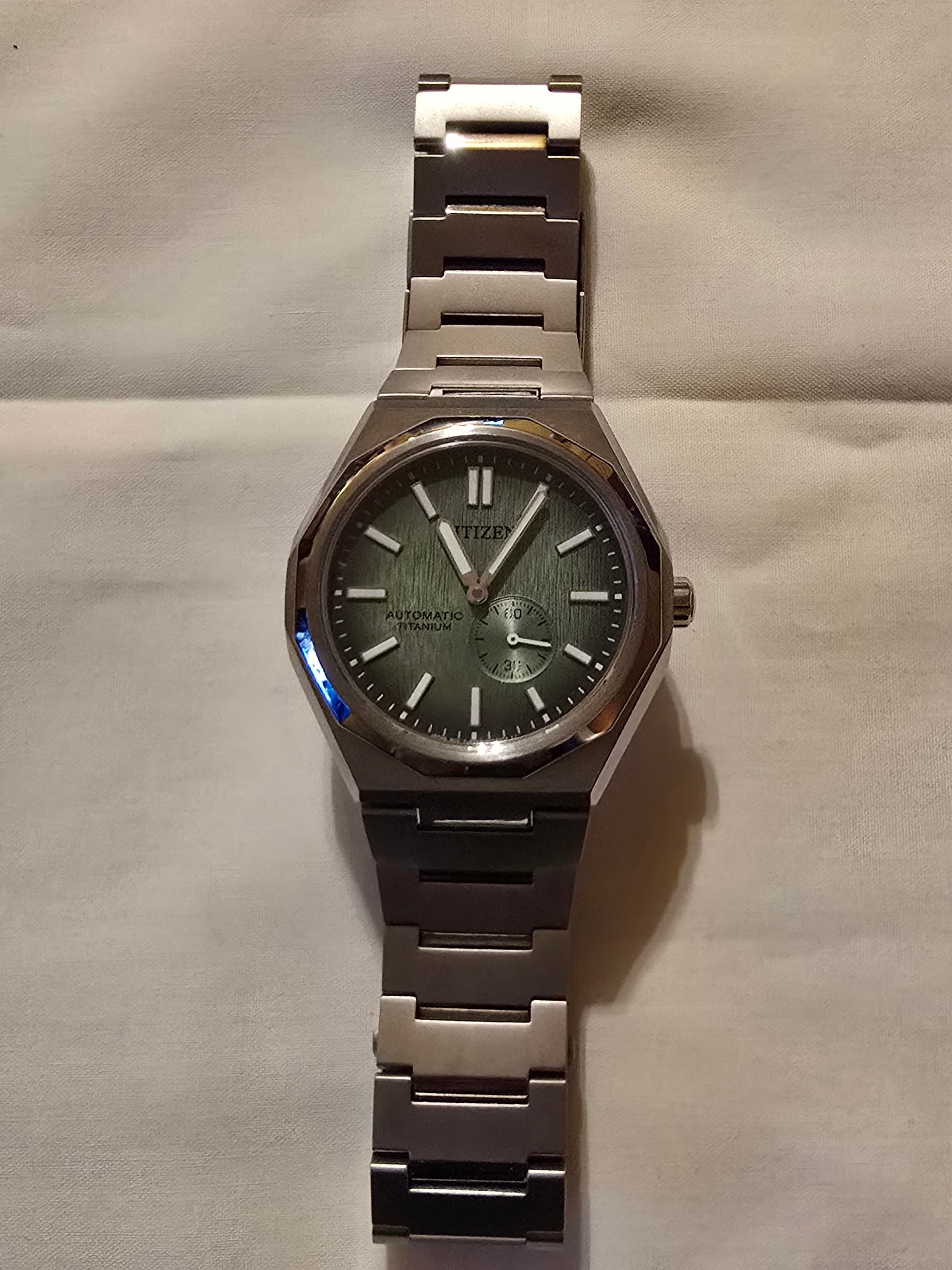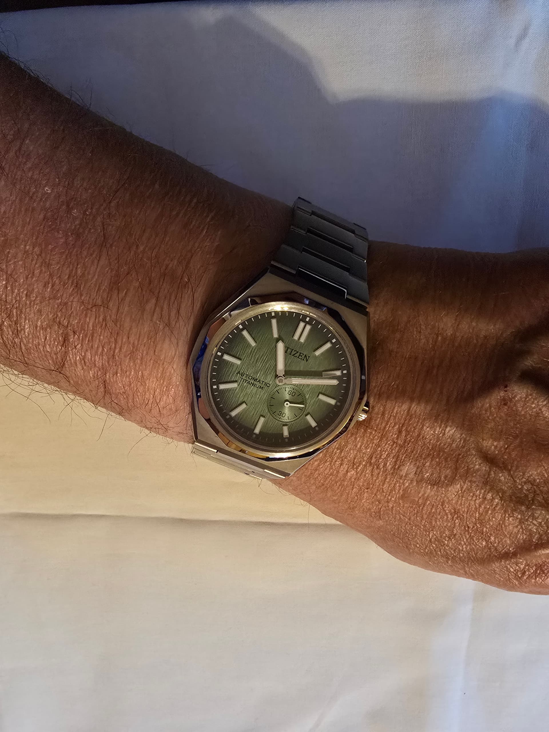 , als je deze mooie Zenshin uit de 60 serie ziet kan je die toch niet laten lopen. En zoals ik tegen velen vaak zeg, groen is de kleur van 2025/2026 en daar heb ik er nog niet zo veel van. En geen datum dit keer, kan ik toch niet zien met mijn slechte oogjes. Maar wel met de loep goed naar de afwerking en de wp gekeken. En zeg nu eerlijk, dit is toch waar voor je geld?