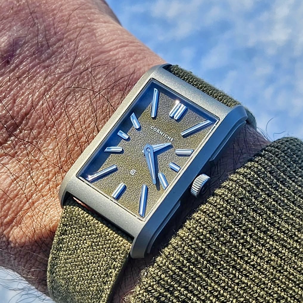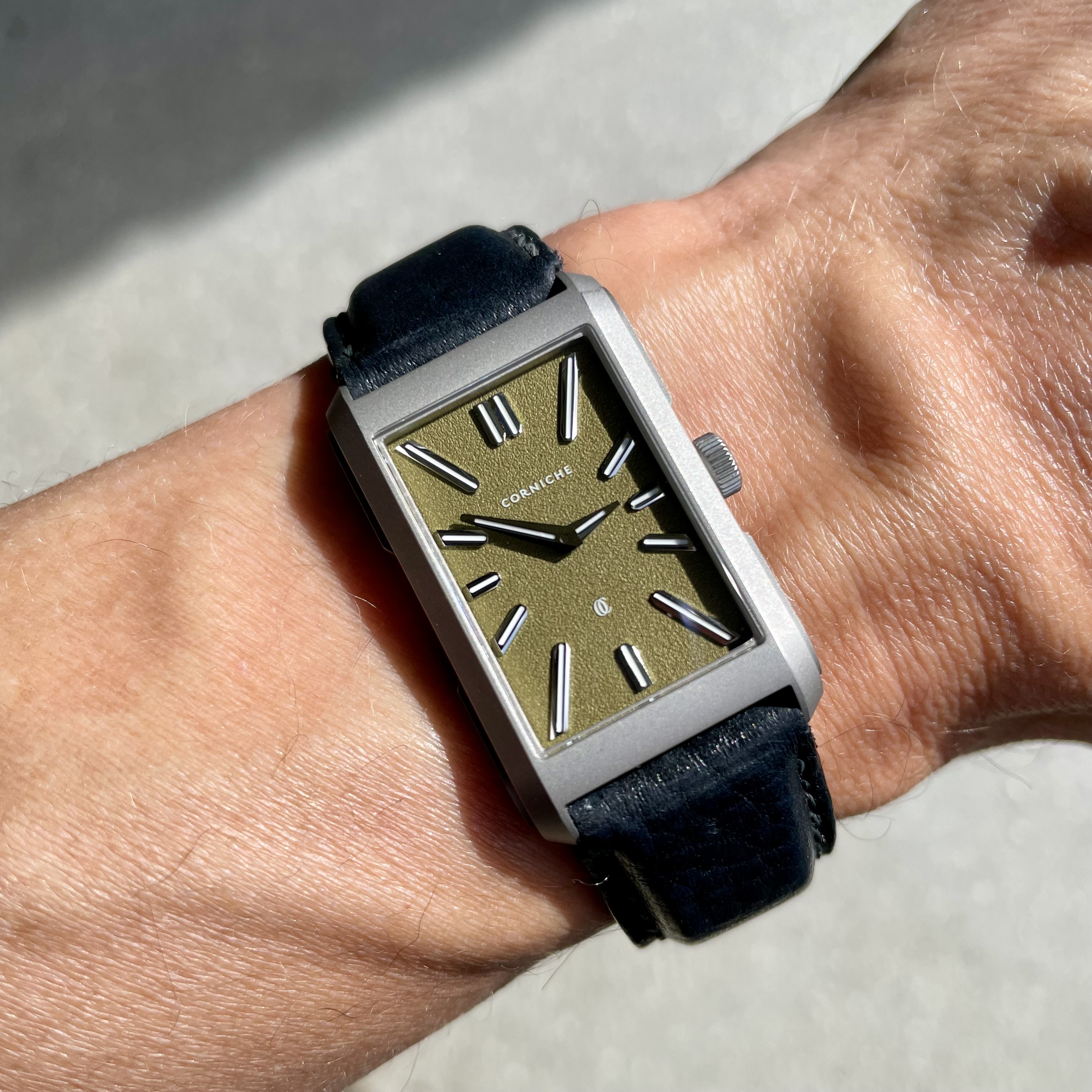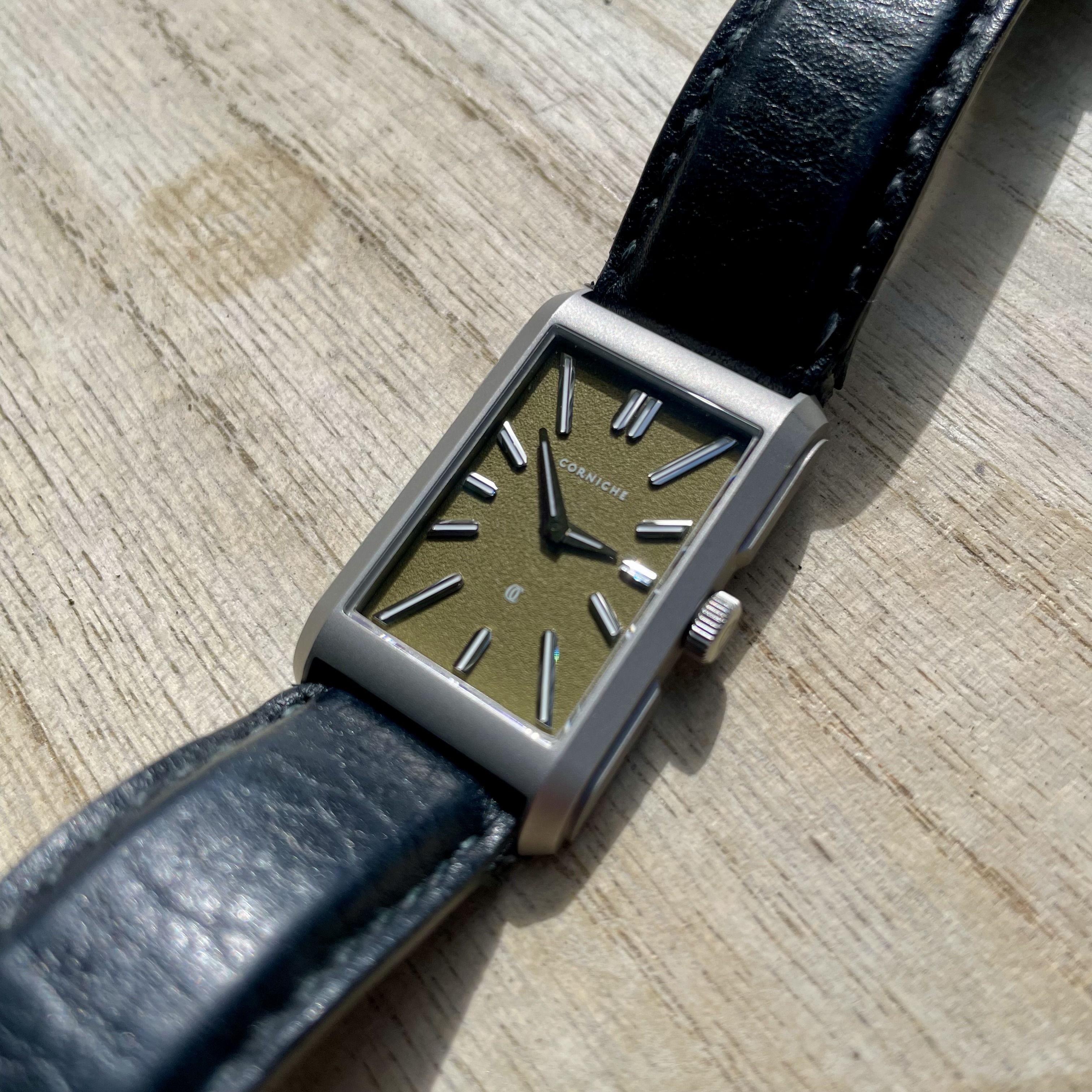 Na ooit een Cartier tank Solo te hebben gehad, ben ik een grote fan gebleven van het tank model. Altijd chique, volgens klassieke begrippen sportief en meestal bescheiden van formaat en in aanwezigheid. Kanttekening vind ik wel altijd de beperkte waterdichtheid. Niet dat je ermee gaat zwemmen, maar toch wat als je weer eens door een flinke hoosbui loopt. De afleesbaarheid aangezien wijzerplaat en wijzers doorgaans wat kleiner zijn. En dan het prijssegment. Diverse courante merken brengen een tank uit, maar eigenlijk blijf ik automatisch altijd alles tegen de lat van Cartier en JLC leggen. En dan kom je ergens online een Corniche Visionnaire OC Limited Editie tegen ![]()