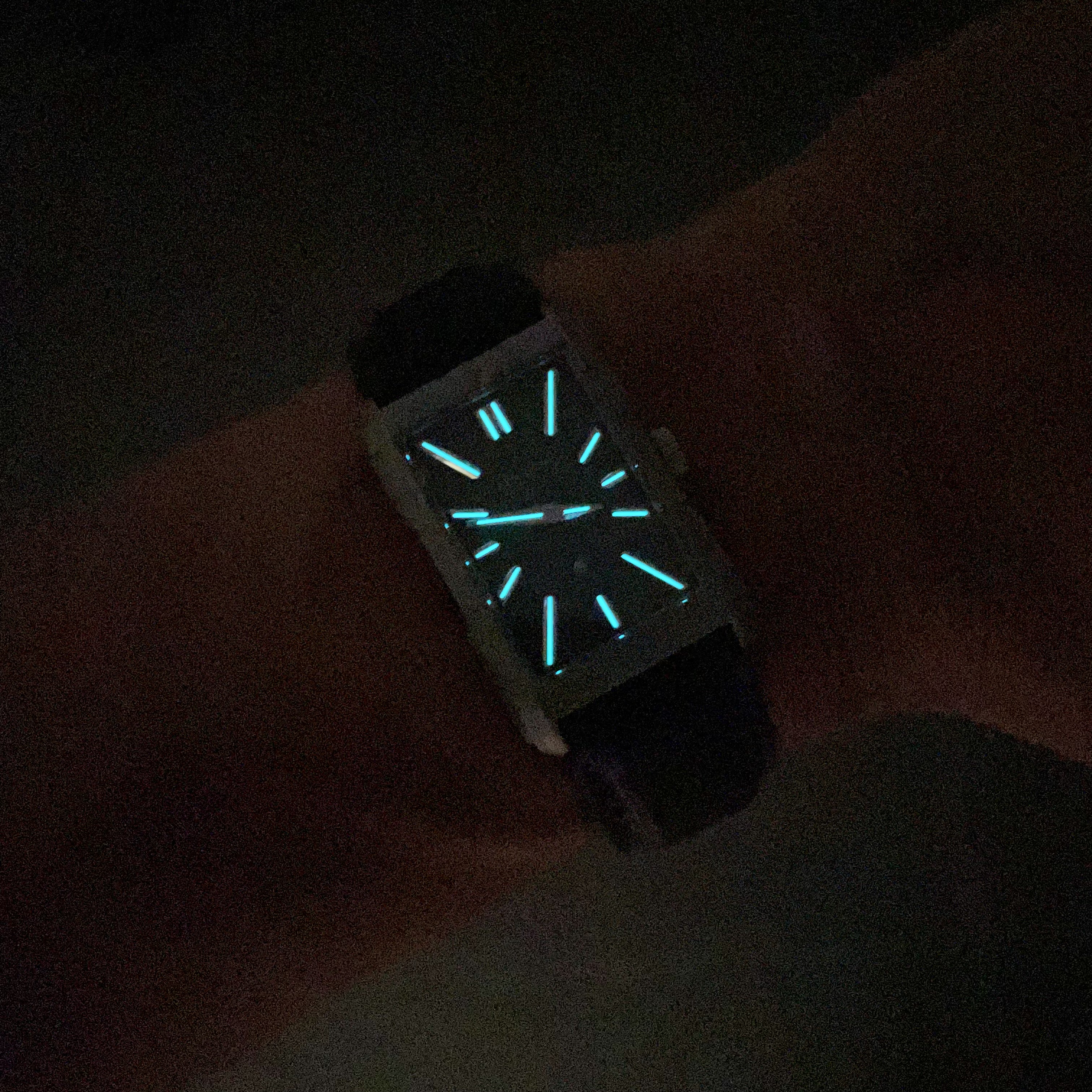 S’avonds deze fantastische lume, waarbij de glad gepolijste wijzers en indices, de zichtbaarheid sterk vergroten.