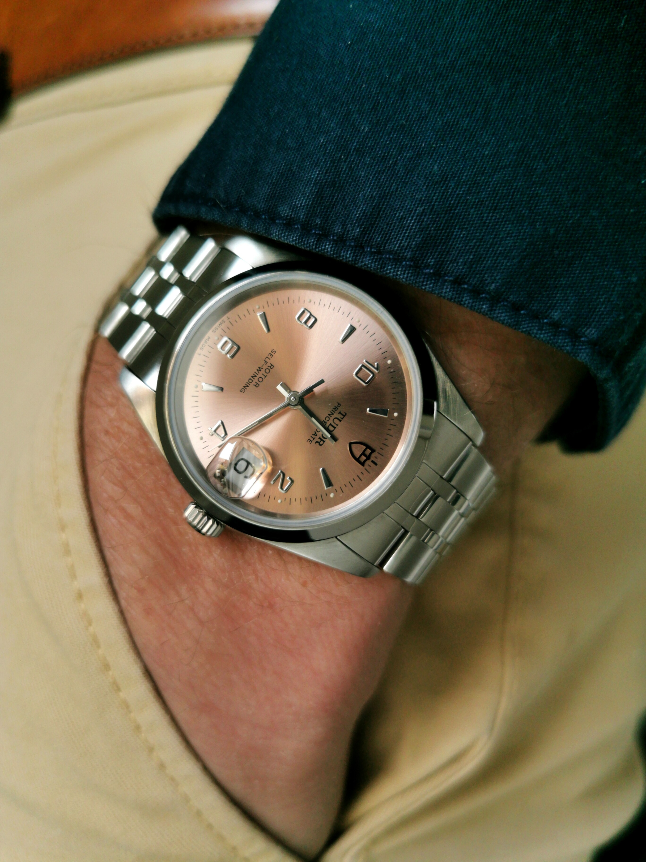 . Sinds jouw post met die zalmroze Oriënt bent ik verliefd geraakt op de zalmroze wijzerplaten! Nu wil ik er ook een