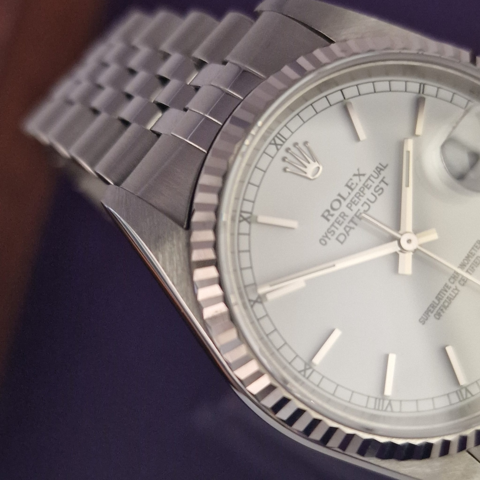Ik besloot er nog even over na te denken maar heb ‘s avonds op 1 januari de knoop doorgehakt en ben de volgende ochtend direct naar Manbodh gegaan. Na ook nog even twee 50’er jaren, en een 90’er jaren Datejust met zwarte wijzerplaat gepast te hebben heb ik deze prachtige 16234 uit 2005 gekocht. Ik ben werkelijk superblij met dit prachtige horloge in uitmuntende staat! ![]()