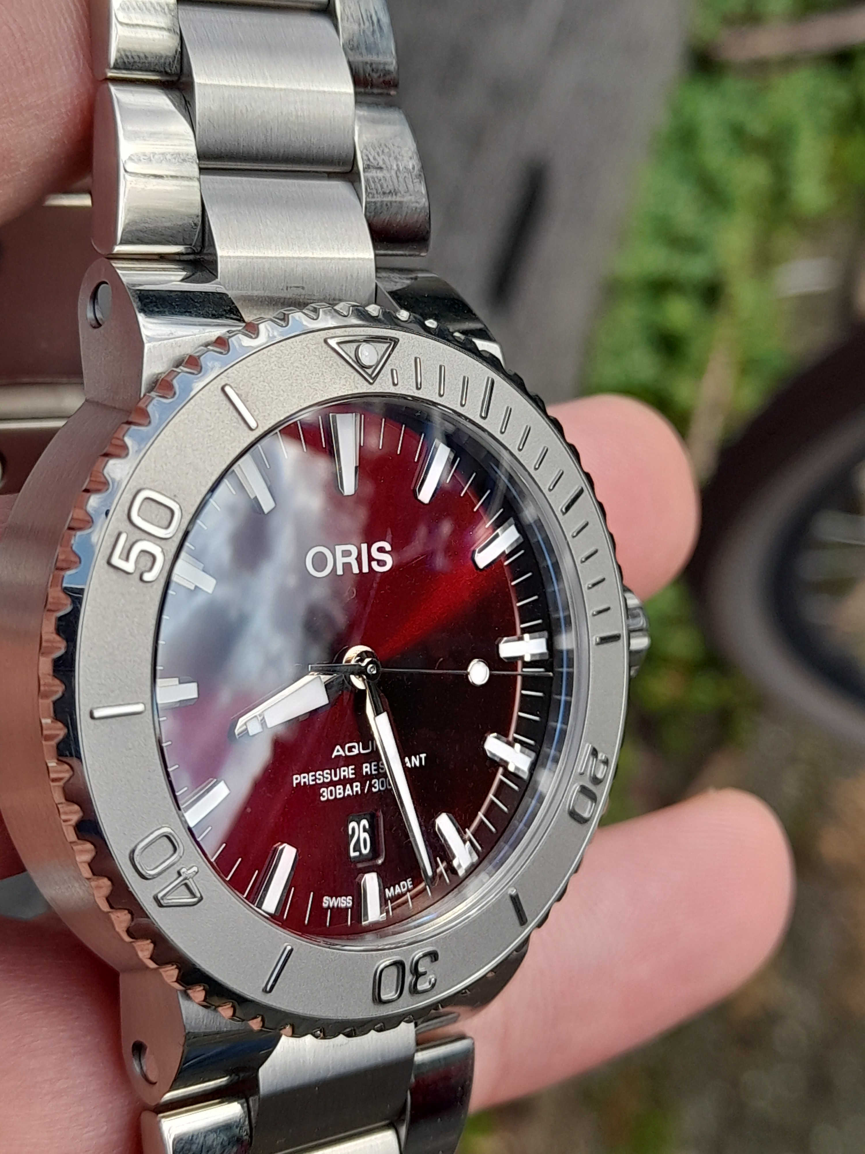 Nou, hieronder dus de foto’s van mijn tweede NA van dit kalenderjaar, de Cherry rode Oris Aquis:
