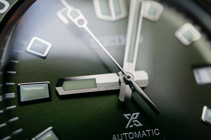 Zeker het feit dat de wijzers half gepolijst en half gesatineerd zijn is in het echte leven, tijdens het dragen, erg goed zichtbaar. Ik ga het niet vergelijken, maar soms doet de manier waarop deze wijzers met licht spelen me sterk denken aan mijn twee Grand Seiko horloges. Is de finish hetzelfde? Nee, natuurlijk niet. Je ziet onder macro kleine verschillen in afwerking die je bij een GS nooit tegenkomt.