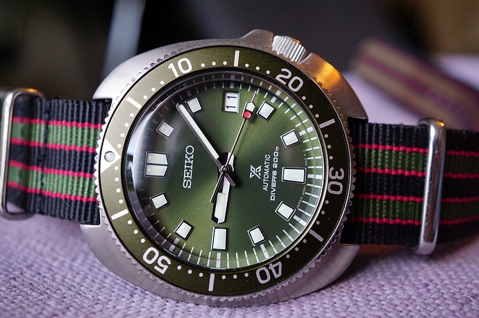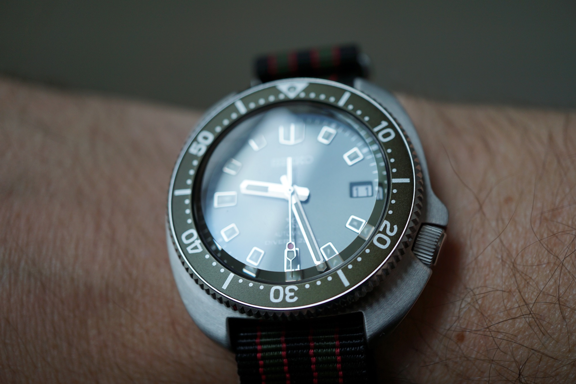 Toen zo’n anderhalf jaar later datzelfde Seiko met een re-issue uitkwam voor nog geen kwart van de prijs, met maten die veel beter waren, en ook nog eens in een olive drab green, ja… Toen wist ik heel erg zeker dat ik zo’n ding moest hebben. Zo gezegd, zo gedaan.