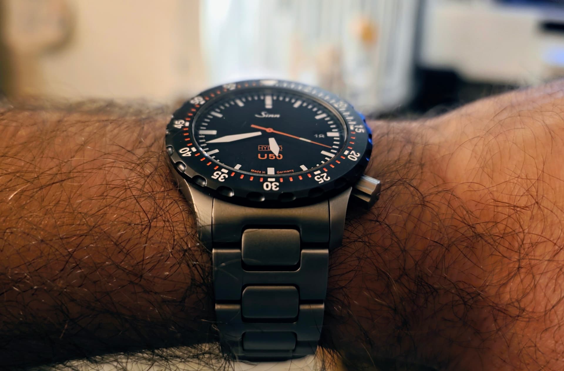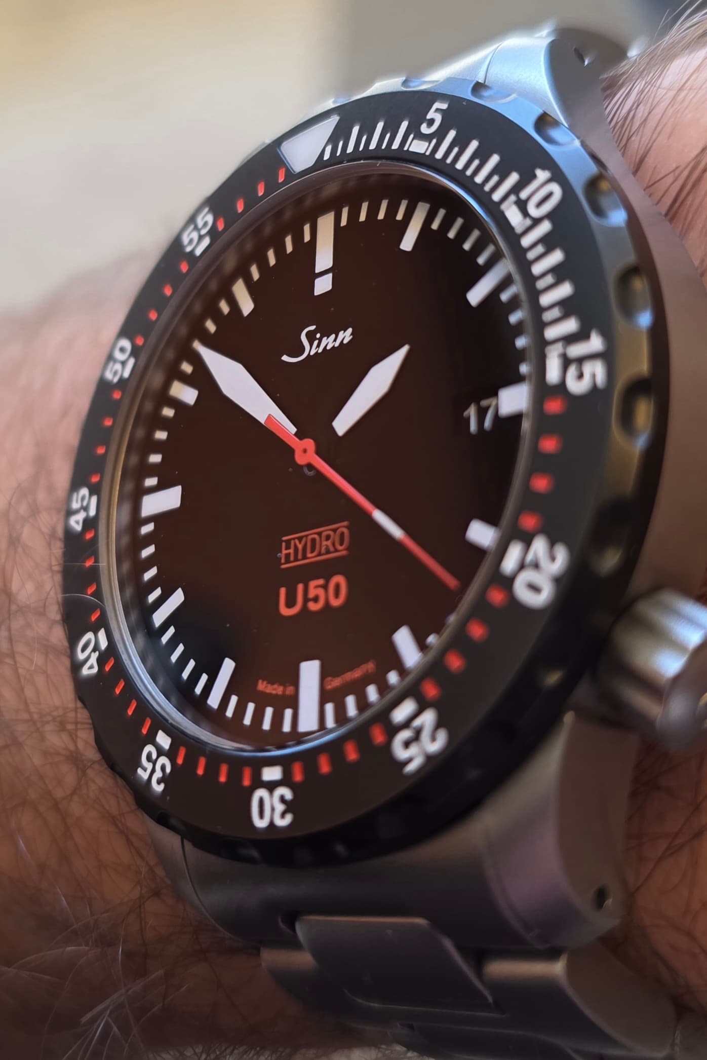 Het merk Sinn was natuurlijk allang in het vizier gezien de opdracht, maar de modellen binnen het budget waren niet exact wat ik zocht. In het verleden ben ik gefascineerd geweest door de UX hydro, maar vond 'm te groot. En wat zag ik nu? Dat ze in de tussentijd een kleiner oliegevuld horloge hebben uitgebracht! En deze stond ook nog eens, in uitstekende staat, compleet met alle soorten banden, in de prachtige SDR configuratie en met prijs dichtbij het budget in het blauw. Na vlot en fijn contact met @Doakes17 werd er overeenstemming bereikt, en was de Sinn U50 hydro SDR binnen no time onderweg.