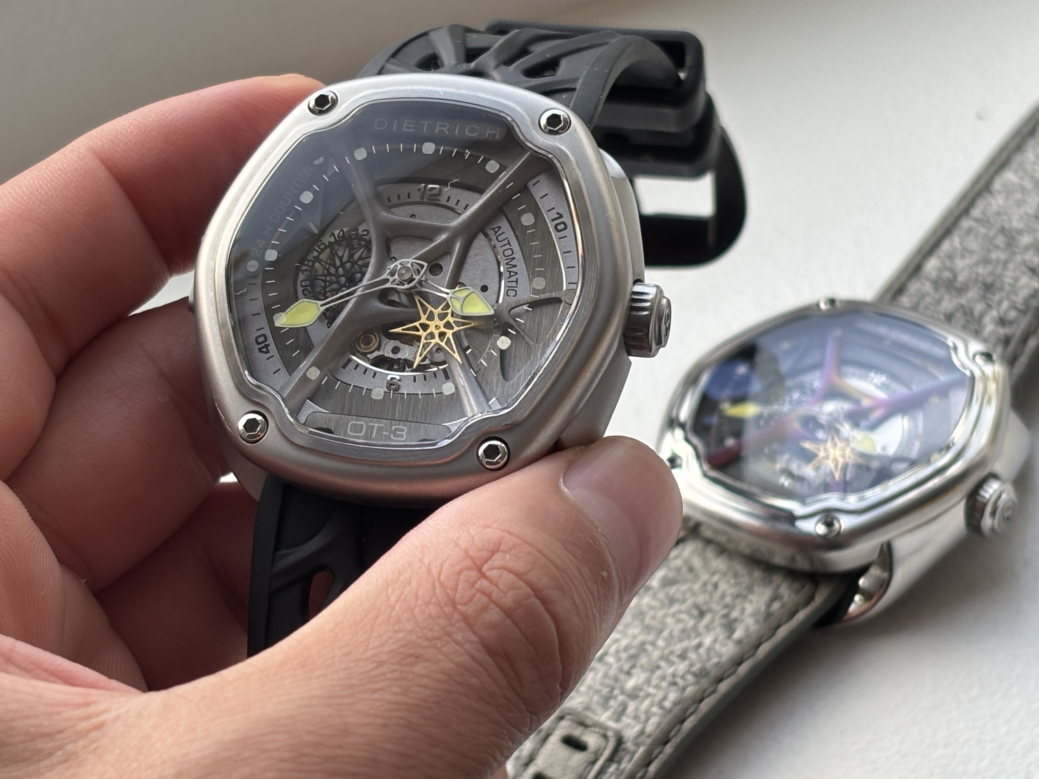 Afgelopen week toch wel een bijzonder horloge binnengekregen vanuit Zwitserland. Namelijk de Dietrich OT-3 shine. Geen alledaags horloge en absoluut een conversatie starter.