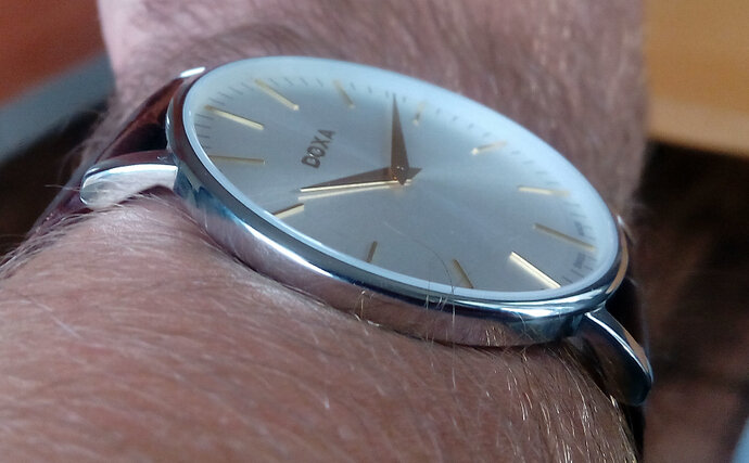 Fraaie dresswatch! Die dunne bezel is heel apart en maakt dat de kast groter lijkt dan die 41 mm.