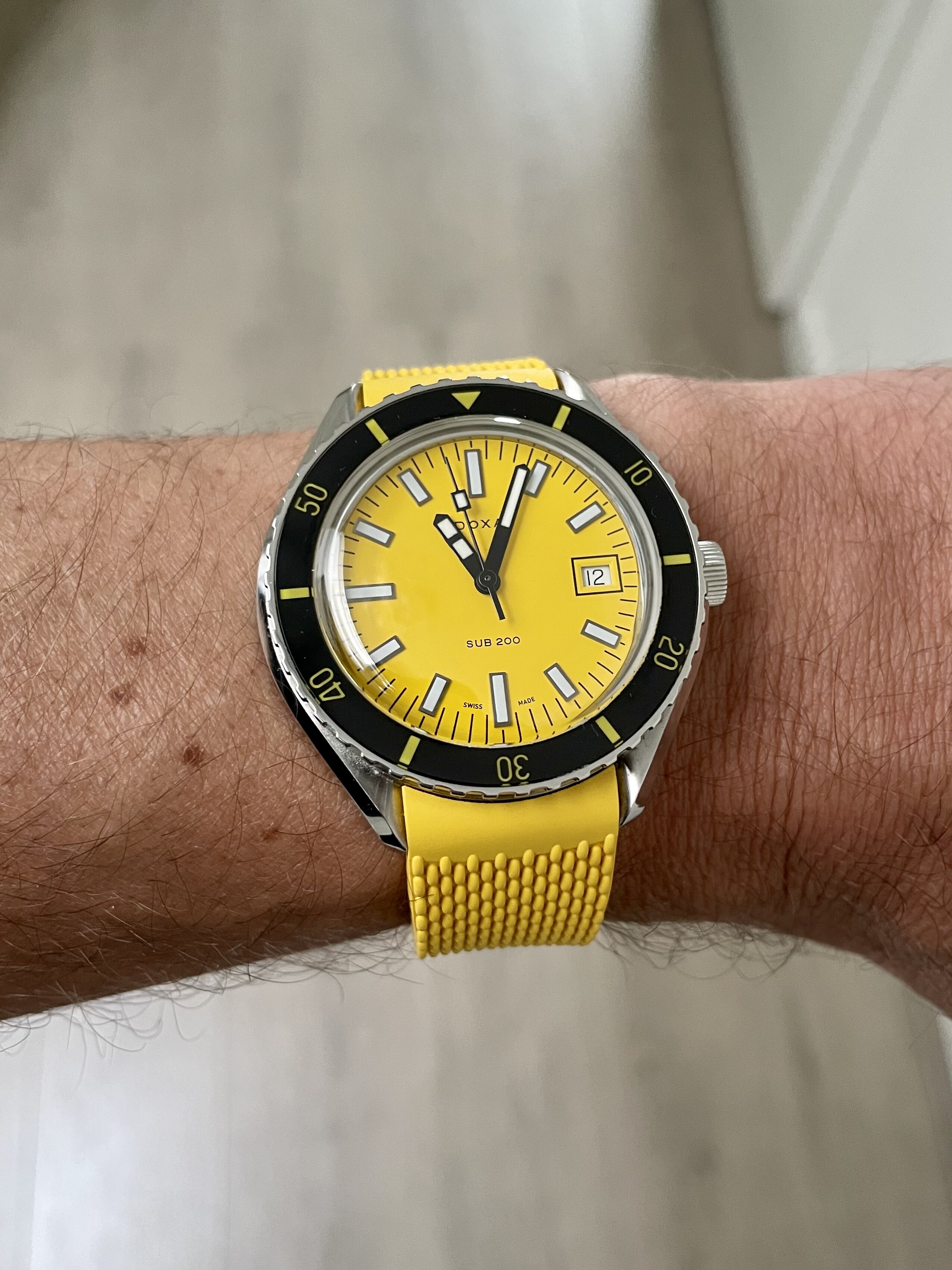 Bij enige navraag en het lezen van reviews en ervaring, was ik er uit. Als je een Doxa neemt, ongeacht welk model, dan moet het een professional zijn. Oranje dus, maar had ik hierboven net niet gezegd dat oranje niks voor mij was