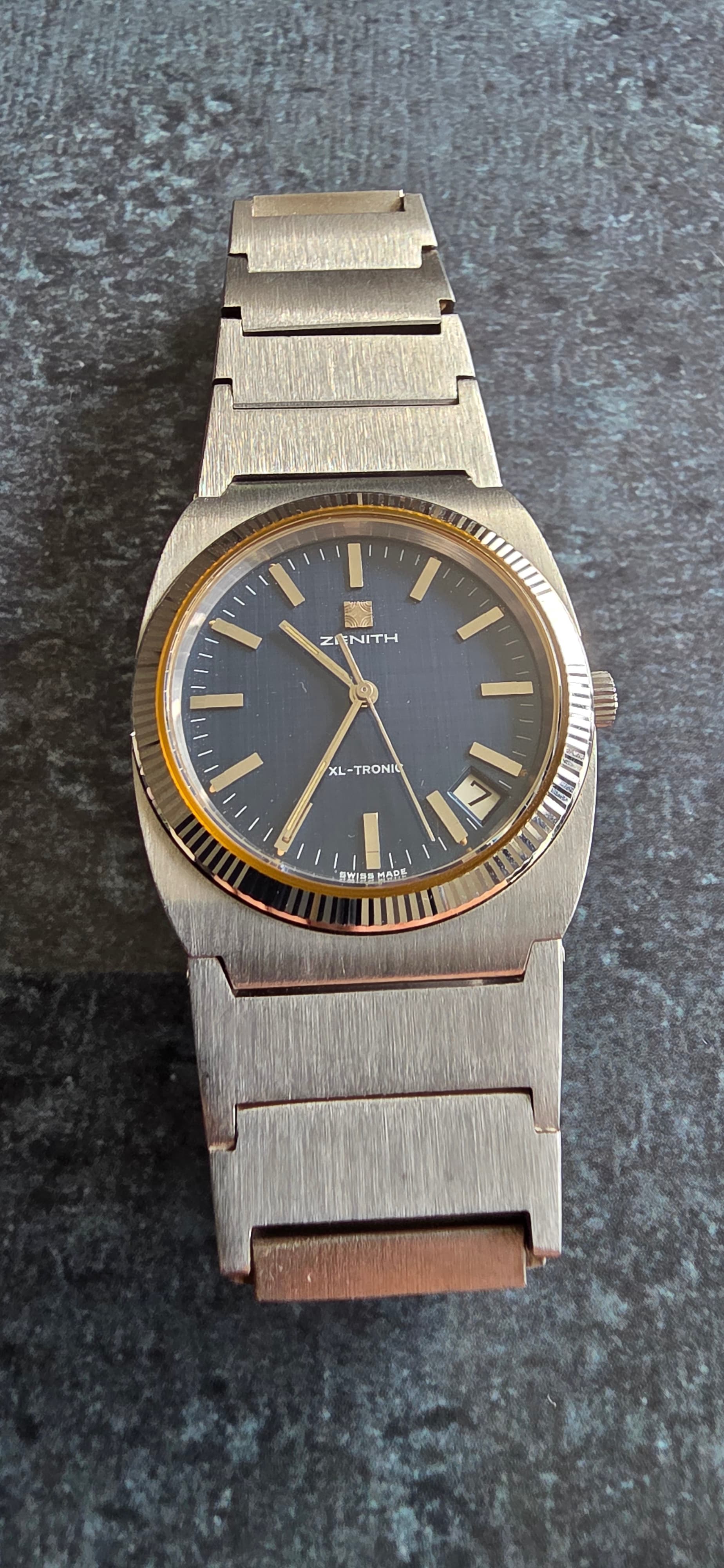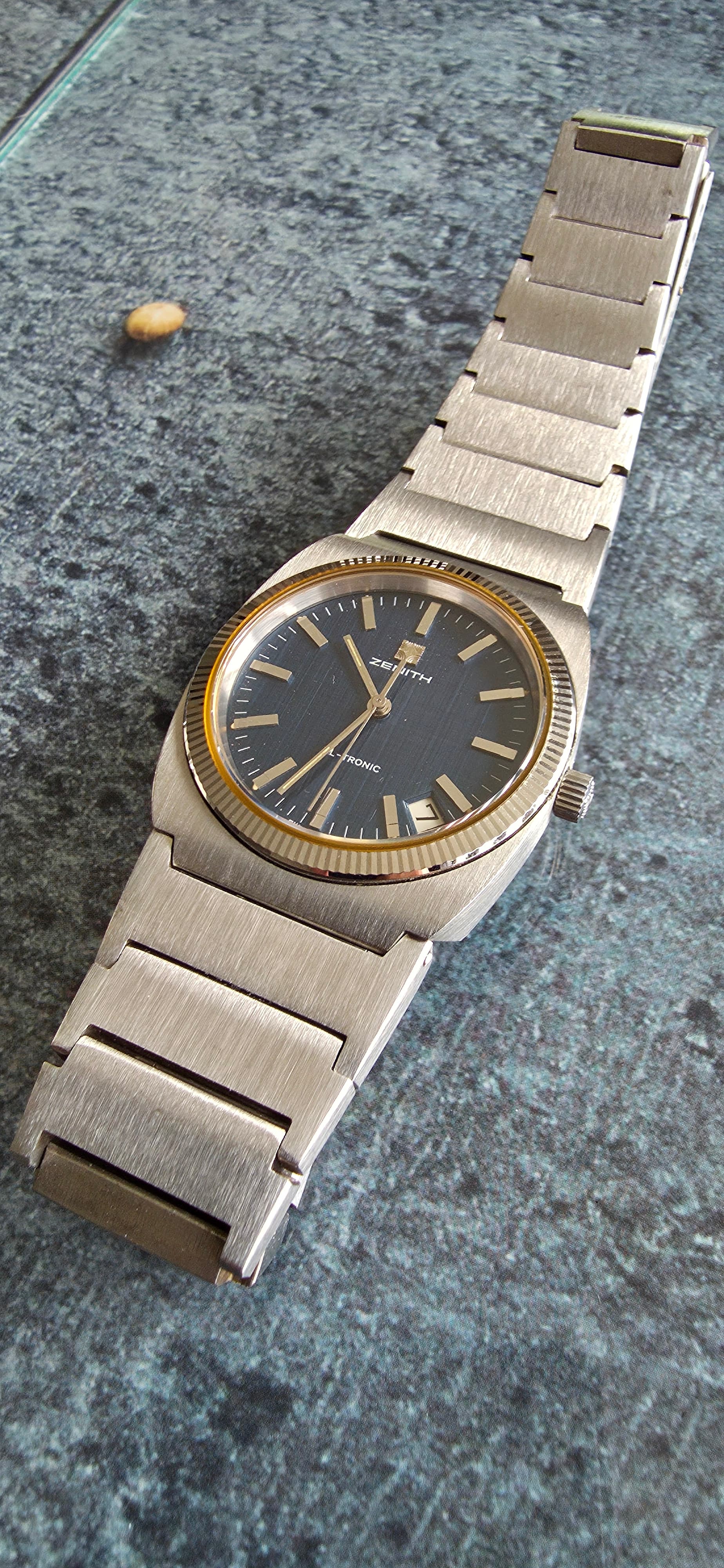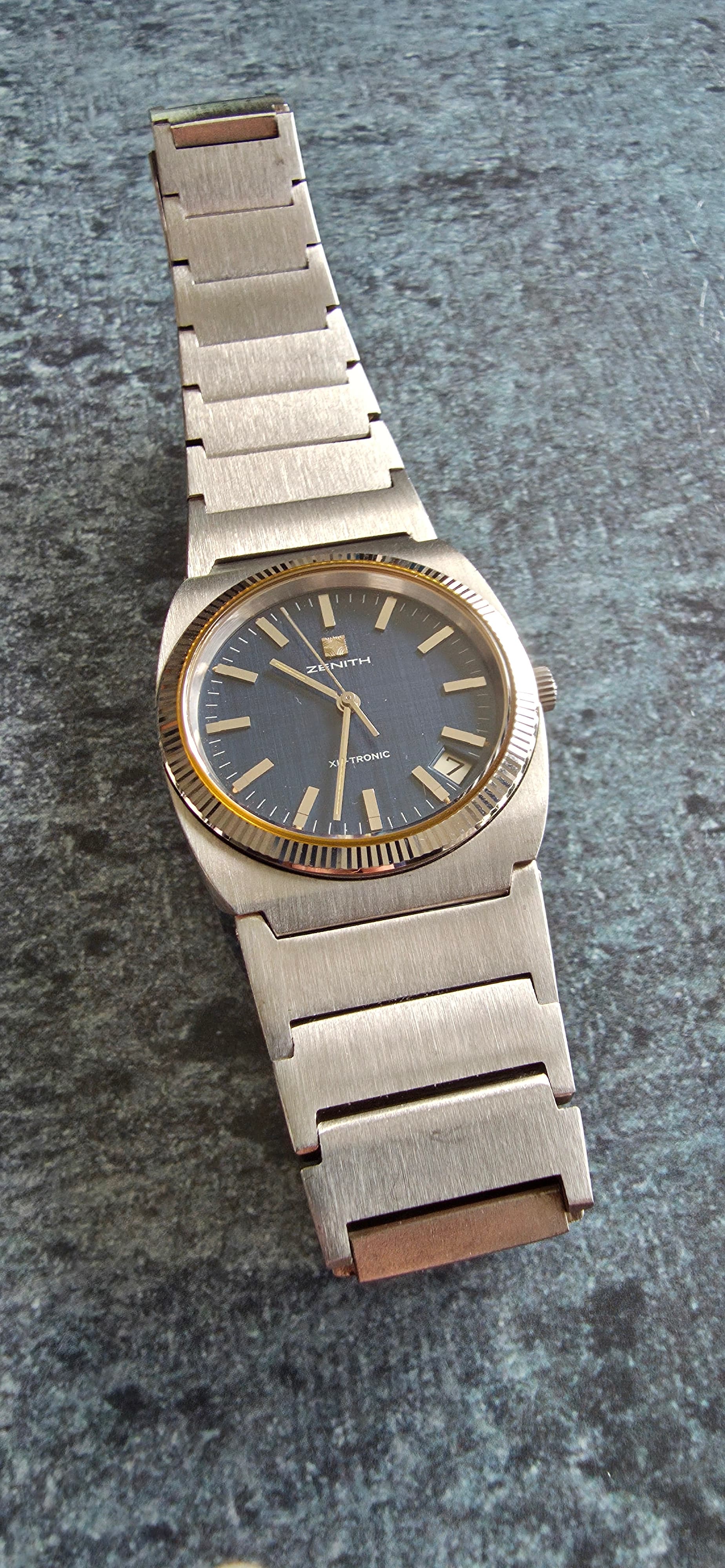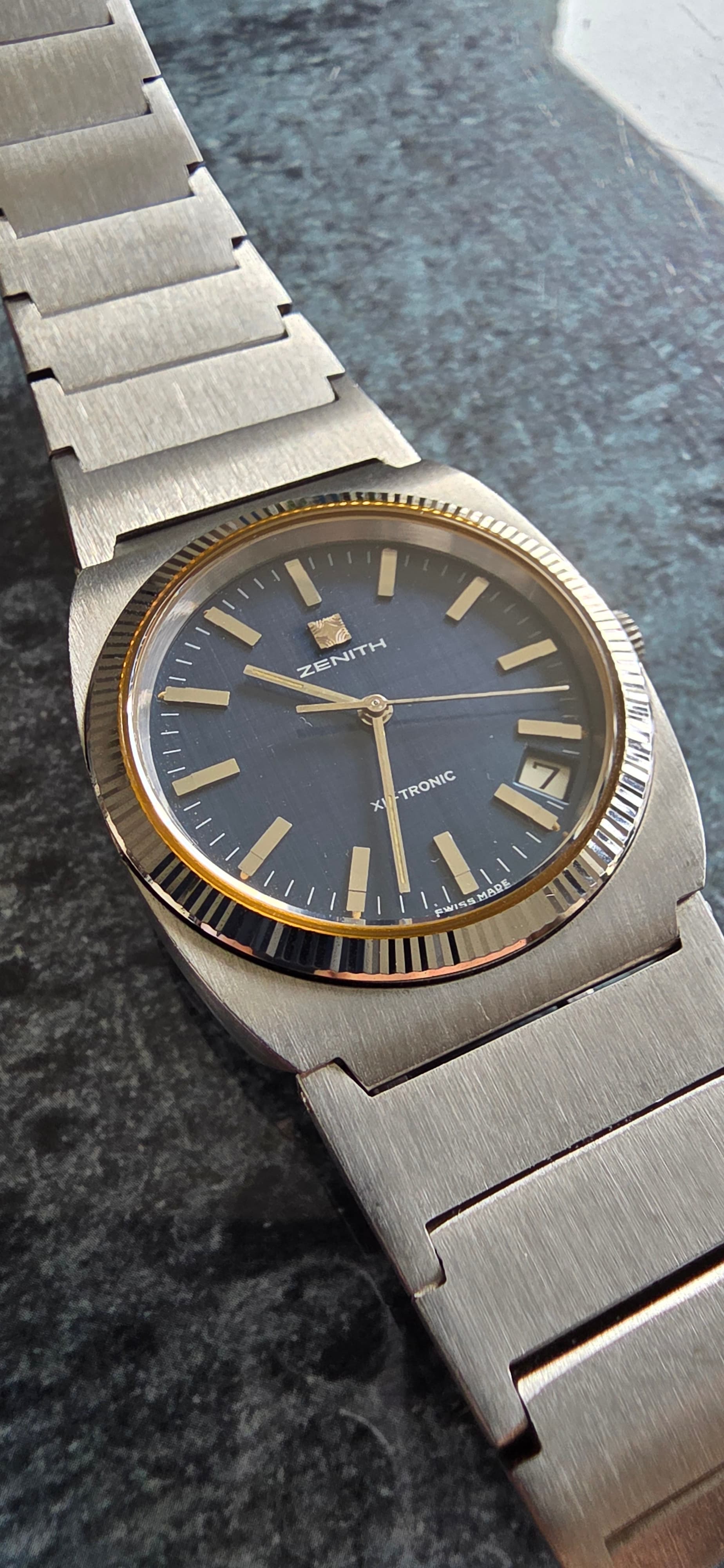 Het verhaal van deze Zenith startte een jaartje of 2 geleden op chrono 24. XL Tronic is een bewaarde zoekopdracht sinds een tijdje. Ik denk dat @Brodie daar mede verantwoordelijk voor is geweest met een lofzang of verkooptopic van een eveens mooie XL Tronic hier op het forum. Dat triggerde me en ik ging rustig de markt is bekijken.