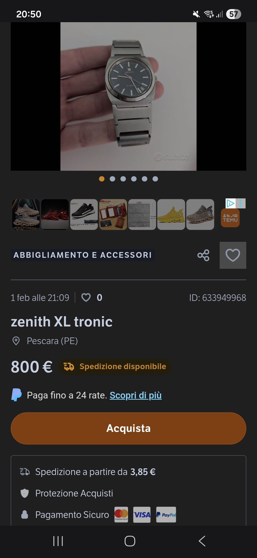 En warempel, opeens komt er een Zenith te voorschijn in een nieuwe advertentie, pas enkele dagen online op het Italiaanse 2dehandsplatform Subito.
