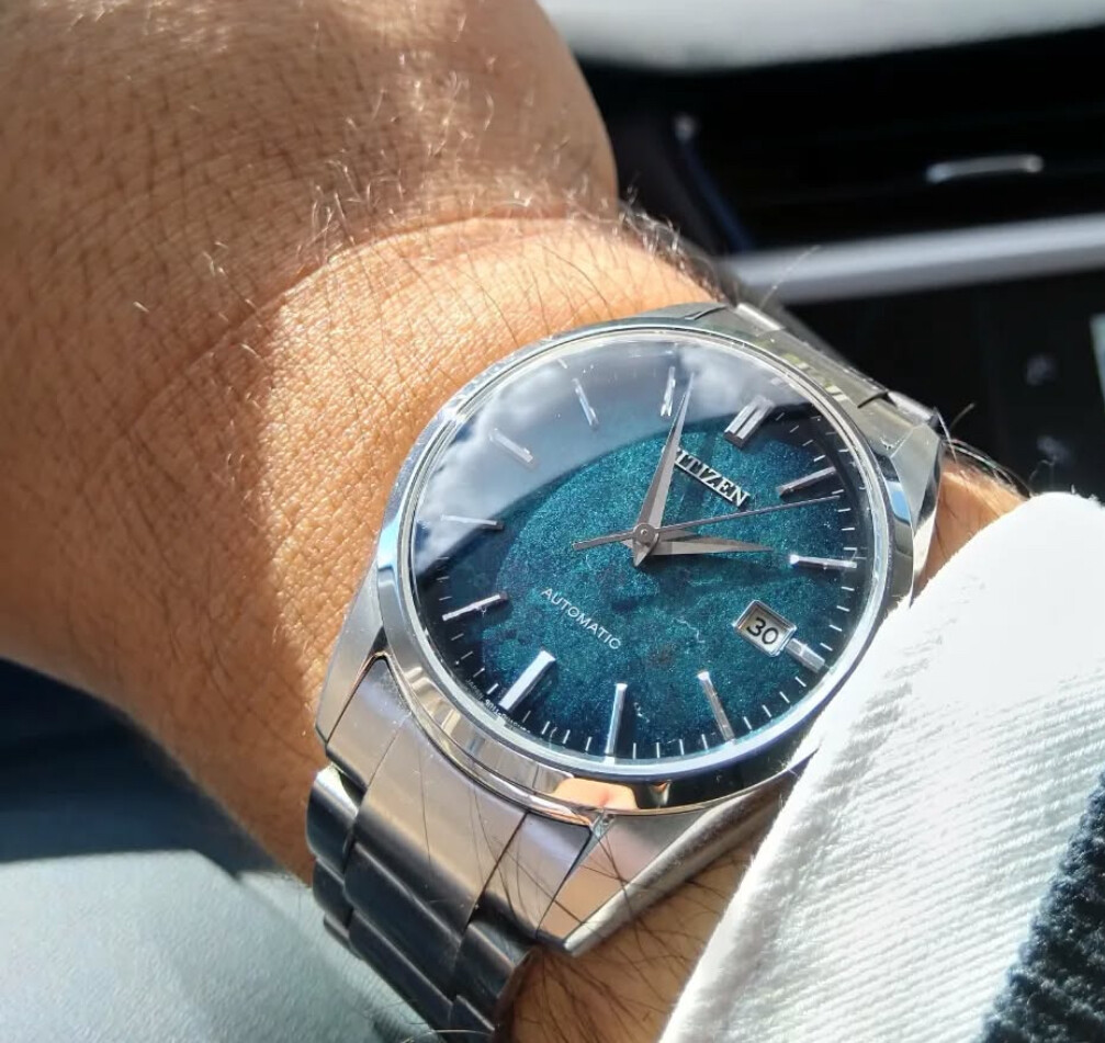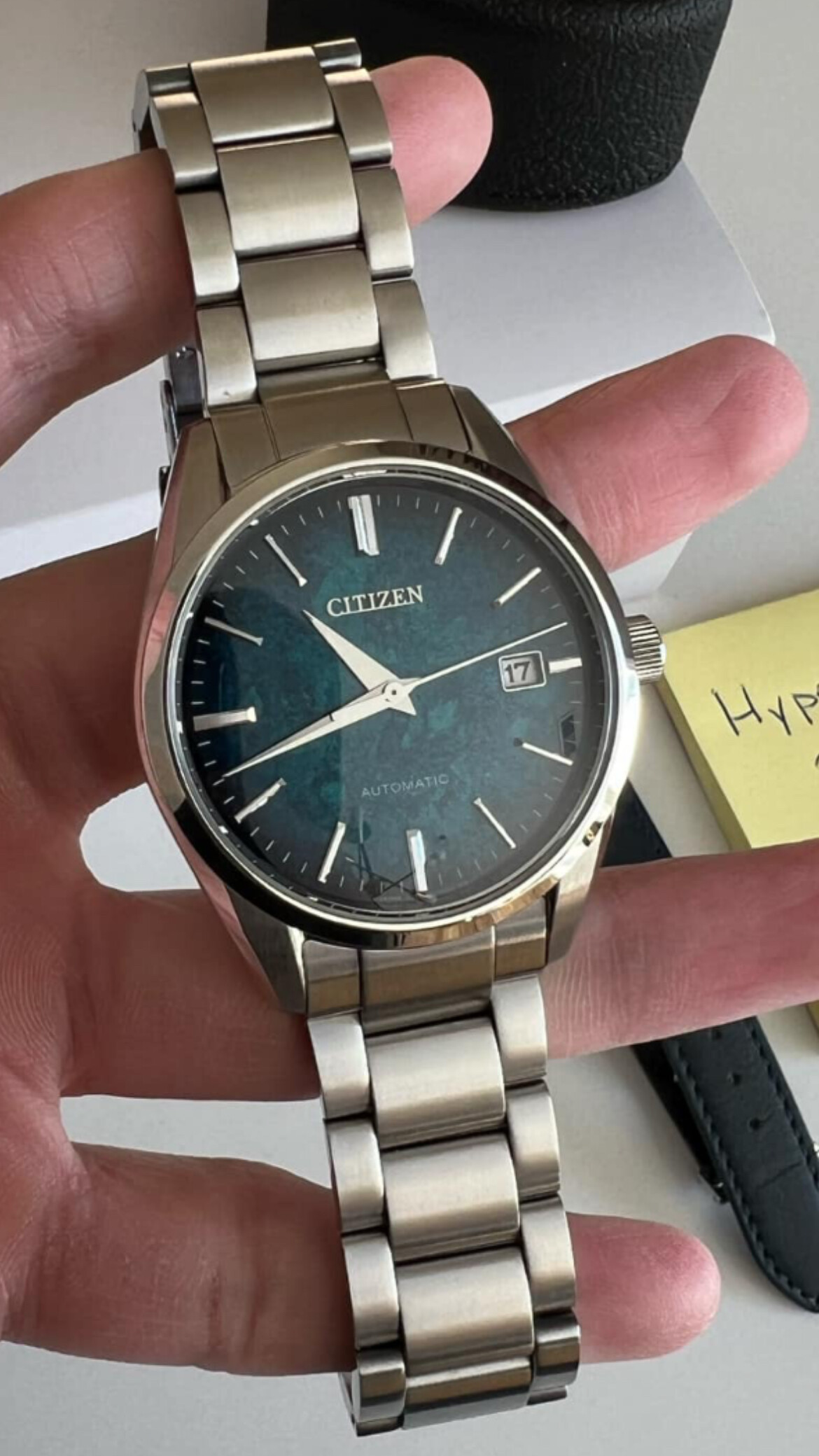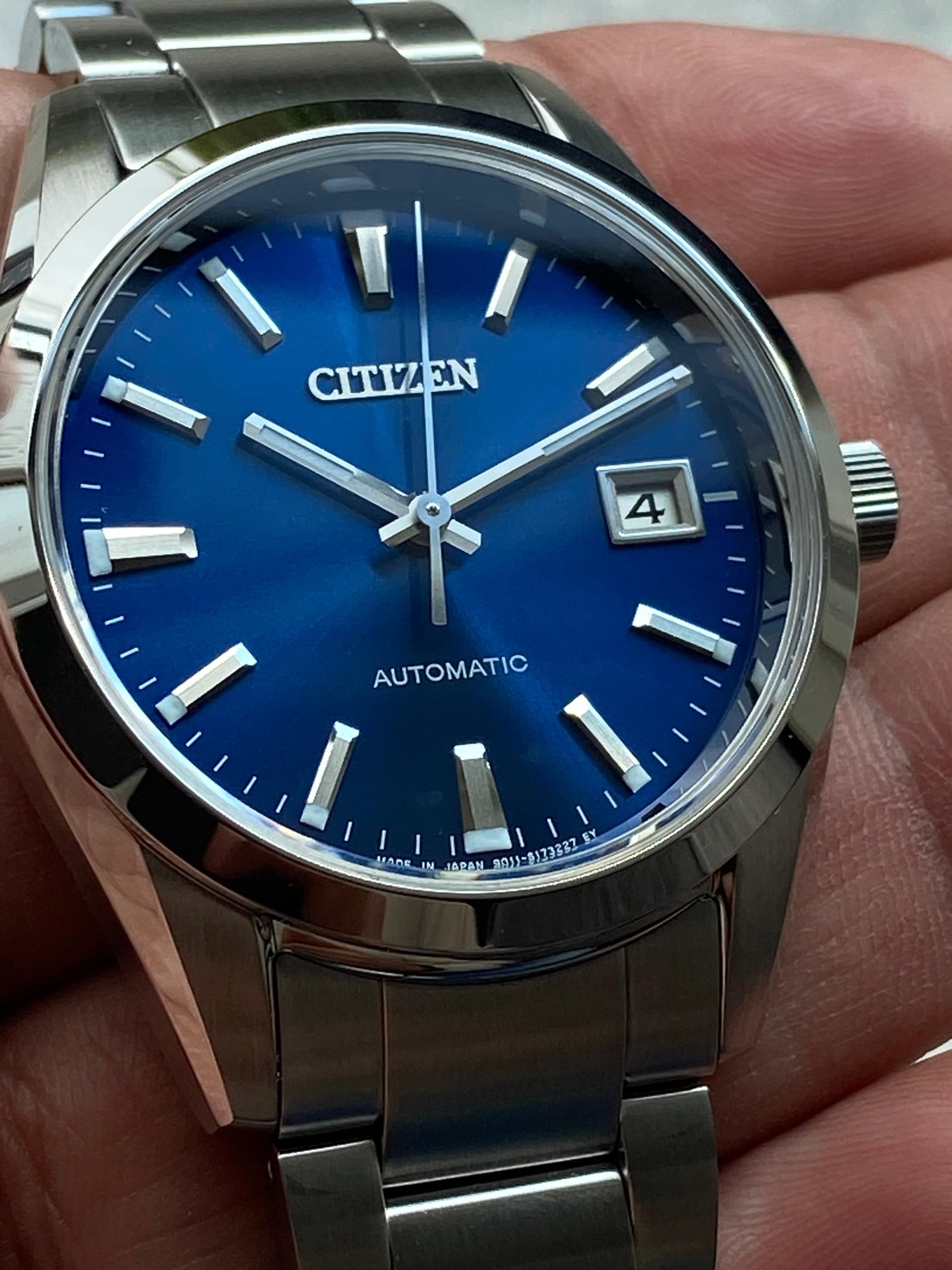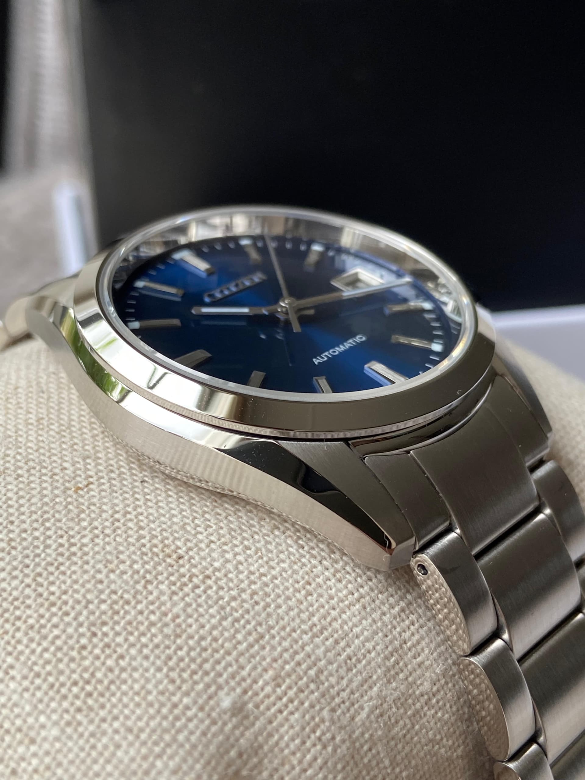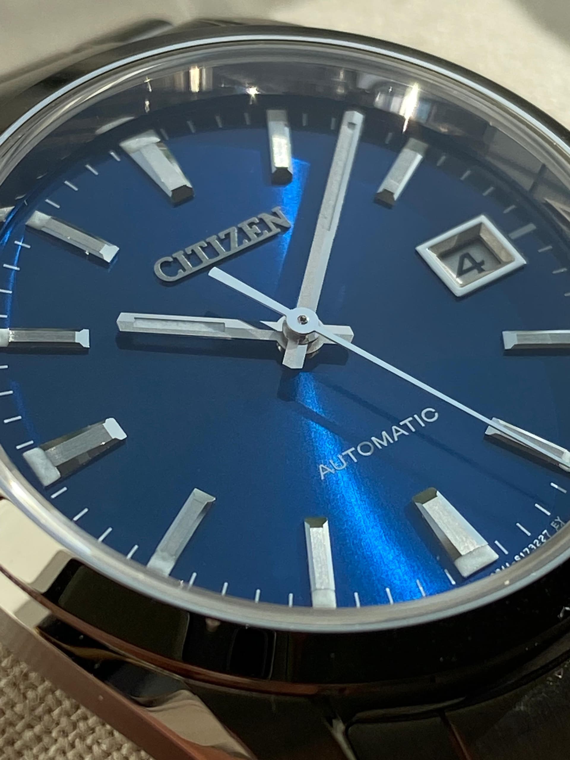 Of ik vind dat dit een SARB killer is? Tja, eerlijk is eerlijk, het zit in dezelfde ballpark. Ik vind het saffier van de Citizen “beter” in die zin dat SARB saffier altijd wat flets was, maar aan de andere kand vind ik Dauphine wijzers toch wel echt mooi. Maar de wijzers van deze Citizen zijn weer mooi afgewerkt. Kortom: Allebei mooi op hun eigen manier.