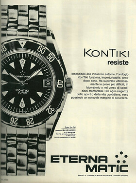 Nog twintig jaar vooruit: het is geen geheim dat Eterna niet is gespaard door de zeventiger jaren ‘quartz crisis’, die menig gerenommeerd horlogehuis op zijn grondvesten deed schudden, en het is daarom dat ik nooit ook maar met een schuin oog naar het assortiment van Eterna ná ~1965 heb gekeken. Totdat ik een poos terug de Eterna Kontiki RoyalQuartz tegenkwam. Mijn interesse was gewerkt, want het was een Kontiki, en ik weet uit ‘hands-on’ ervaring hoe goed dat assortiment uit de jaren '50 en '60 was. Ik ben dus onderzoek gaan doen, en daarbij raakte ik positief verrast toen ik deze advertentie tegenkwam.