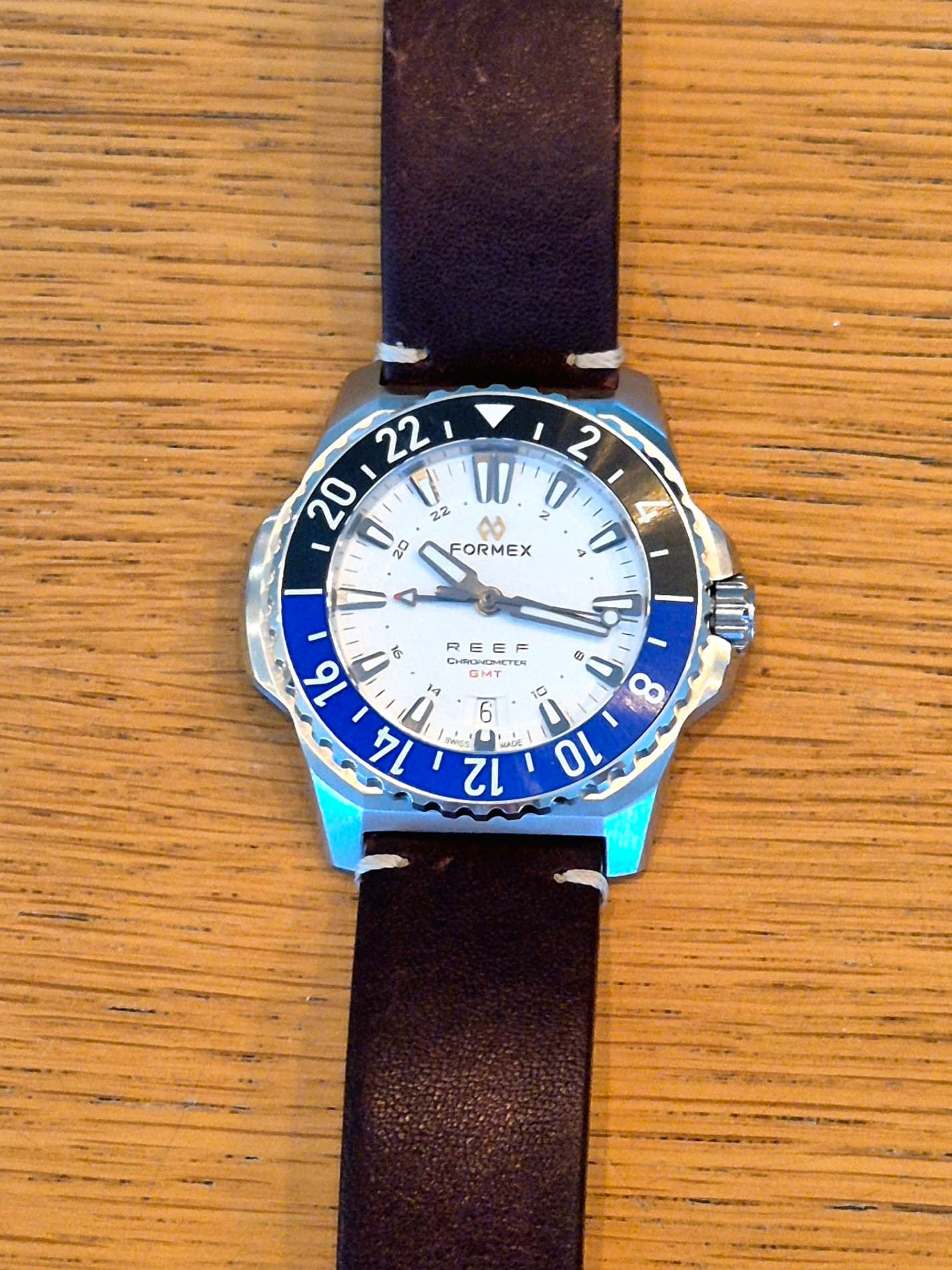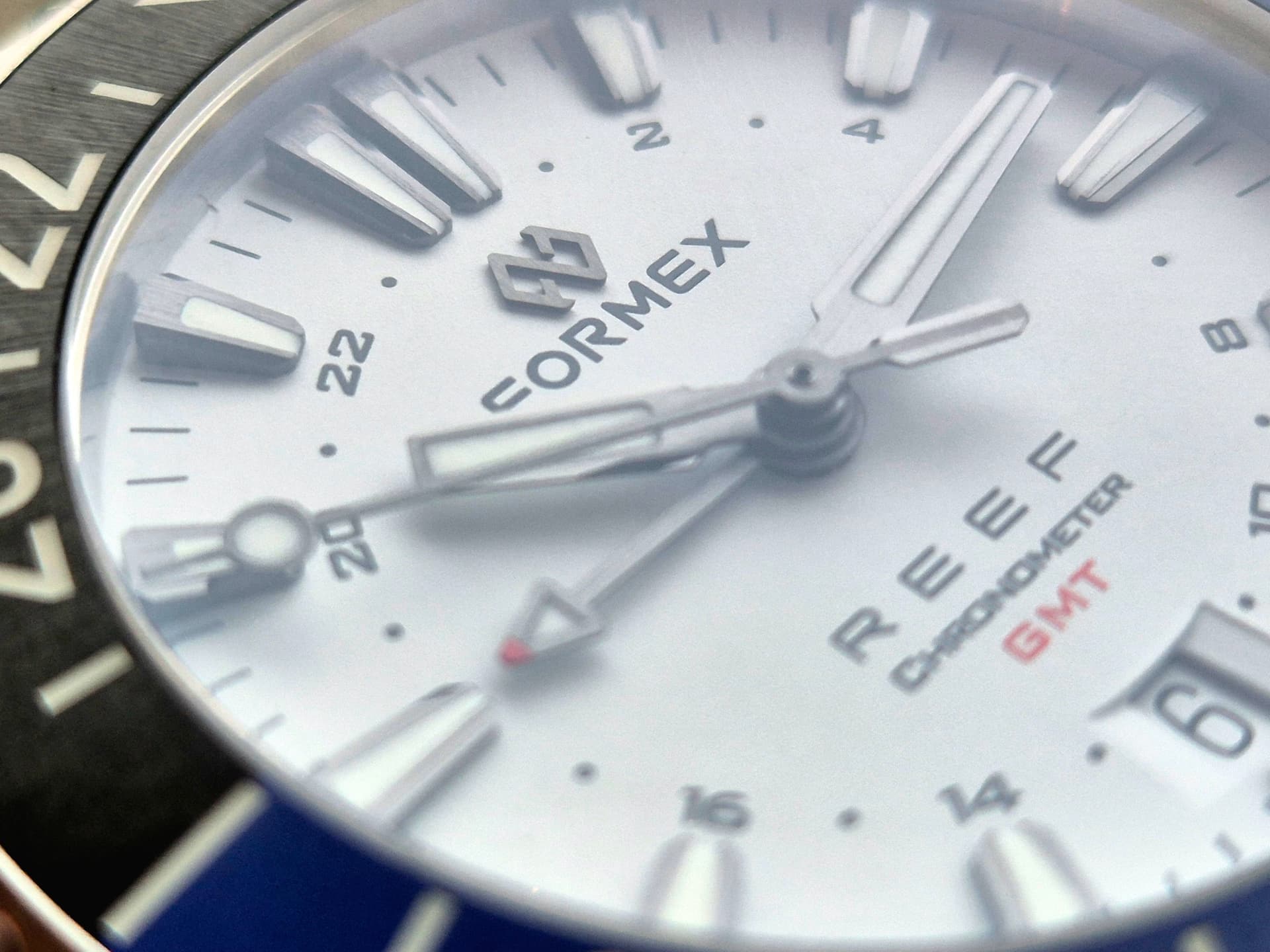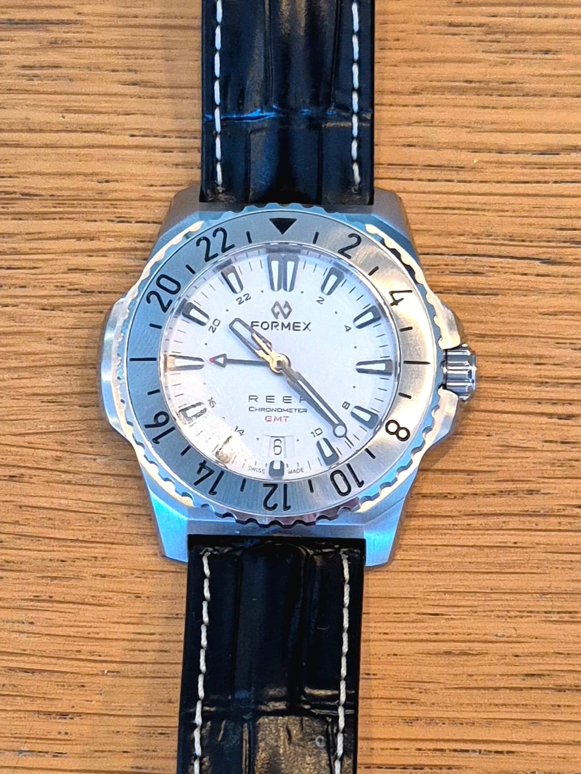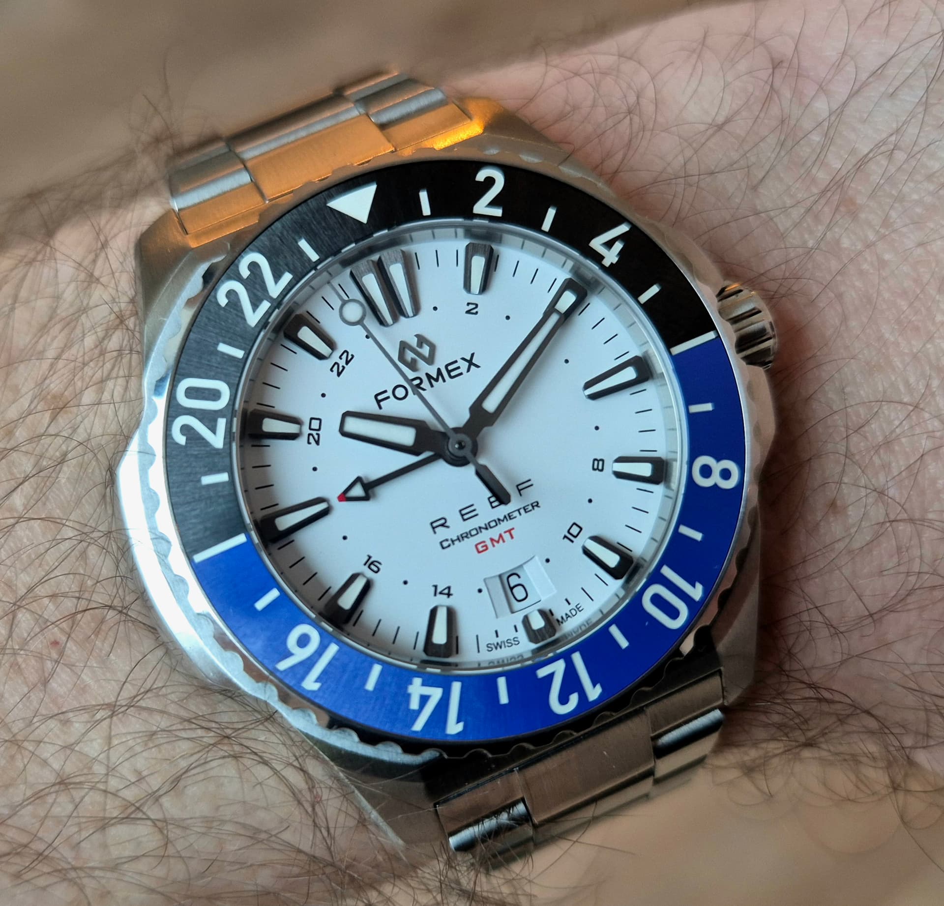 Mijn keuze voor Formex was zowel ingegeven door hun brutale en uitgesproken uiterlijk, de eigenschappen, de specs en ook de prijs kwaliteit verhouding. Meermaals tijdens mijn zoektocht heb ik mogen lezen en horen (bv Mike van This Watch, That Watch en andere reviewers) dat Formex in de prijsklasse van 1500 - 3000 prijs kwaliteit gewoon heel top zijn. Dus veel waard voor je geld denk je dan. En zeker als je de eerste waardedip kunt vermijden met een jongkoop. En dus mocht ik gisteren mooi deze Formex Reef GMT aanschouwen.