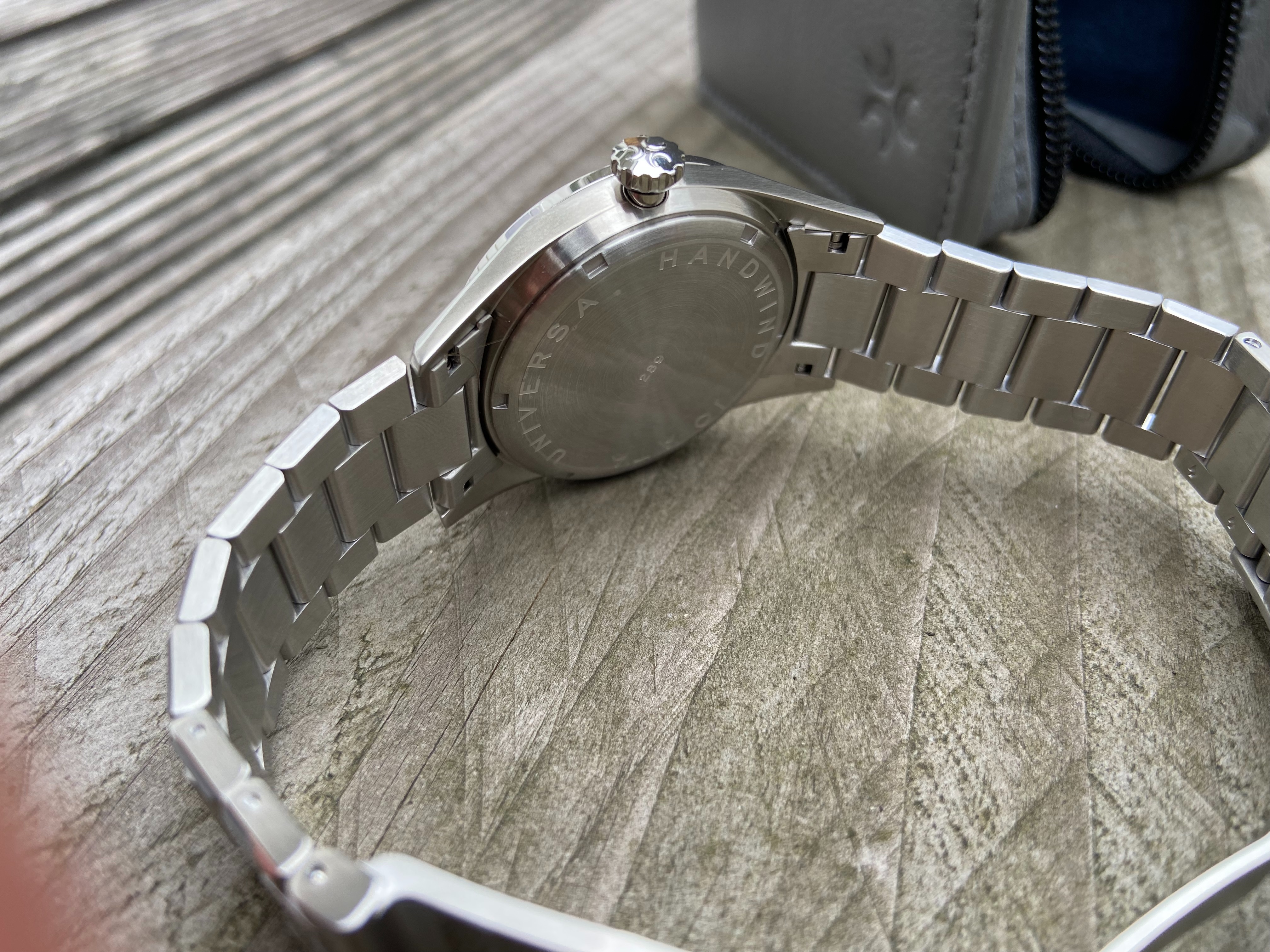 De kast van de Universa is voor het grootste gedeelte geborsteld, met een paar gepolijste accenten zoals de buitenrand/zijkant van de bezel.