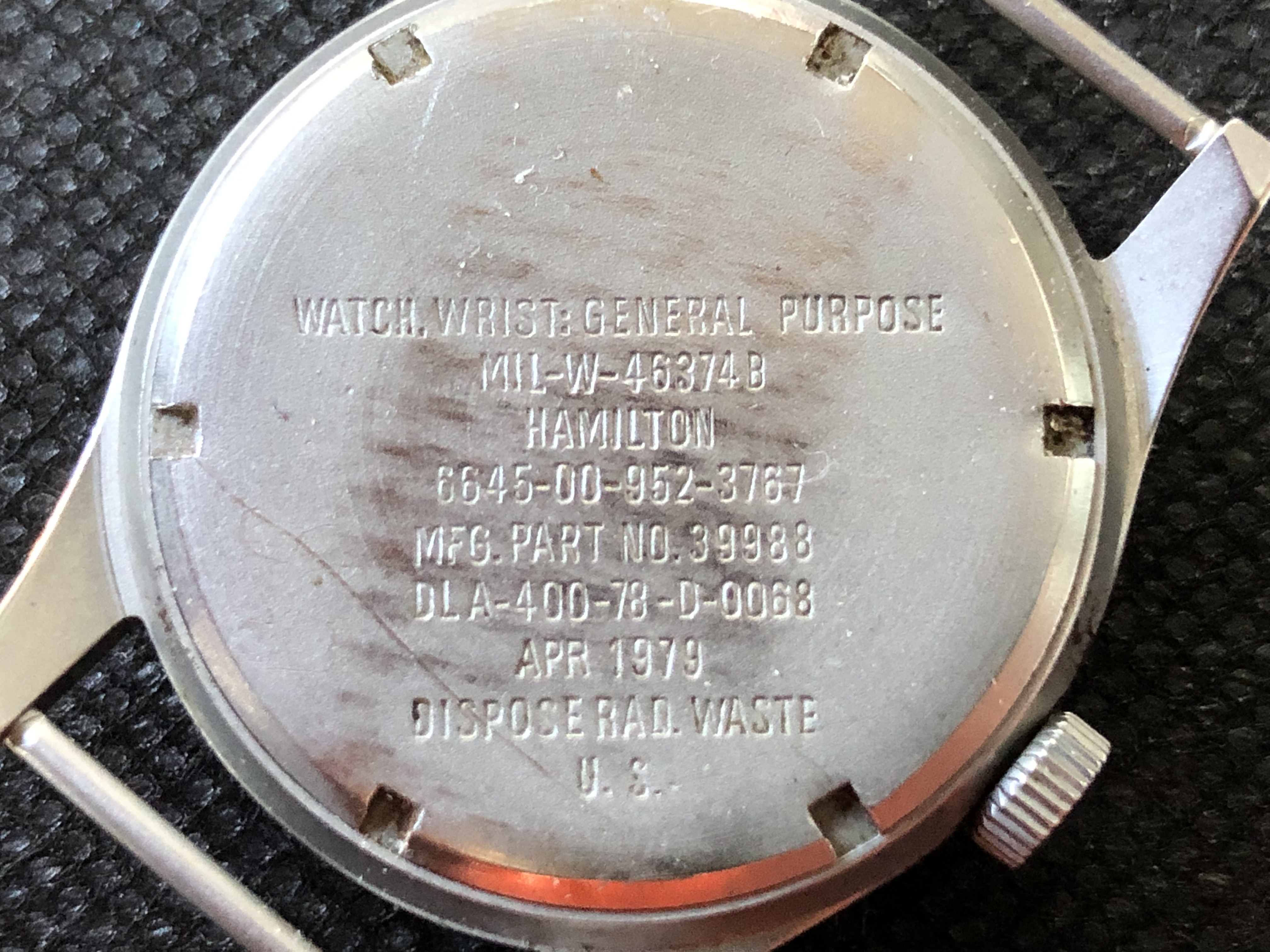 In hoofdlijnen zijn er twee varianten: mijn MIL-W-46374B heeft een eenvoudig uurwerk zonder hacking, de MIL-W-46374D en de GG-W-113 hebben een ETA 2750 uurwerk met hacking. Mijn MIL-W-46374B toont op de wijzerplaat het typenummer H3 en het eerder genoemde symbool voor radioactiviteit, maar er zijn ook versies die die zaken niet tonen.