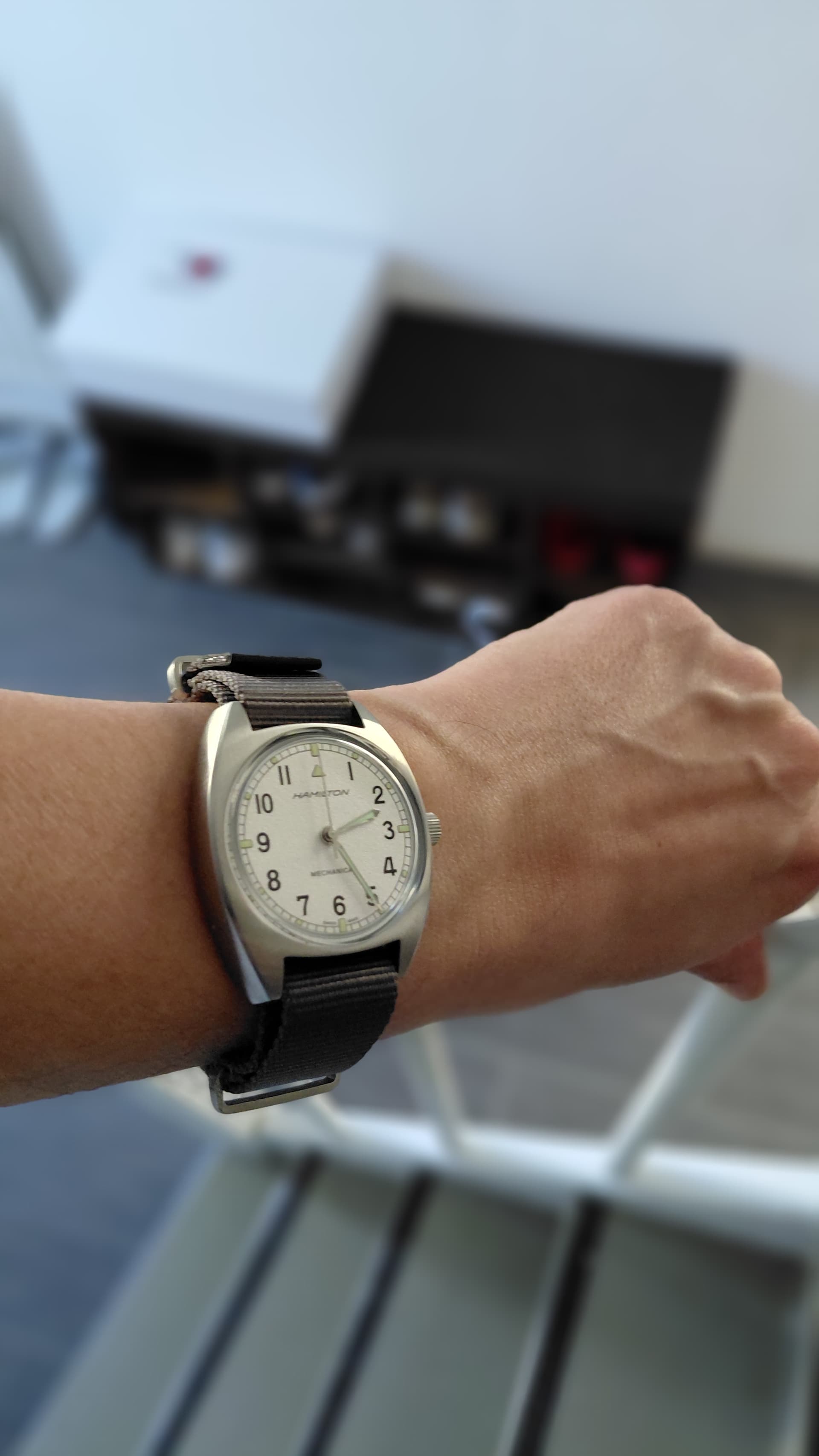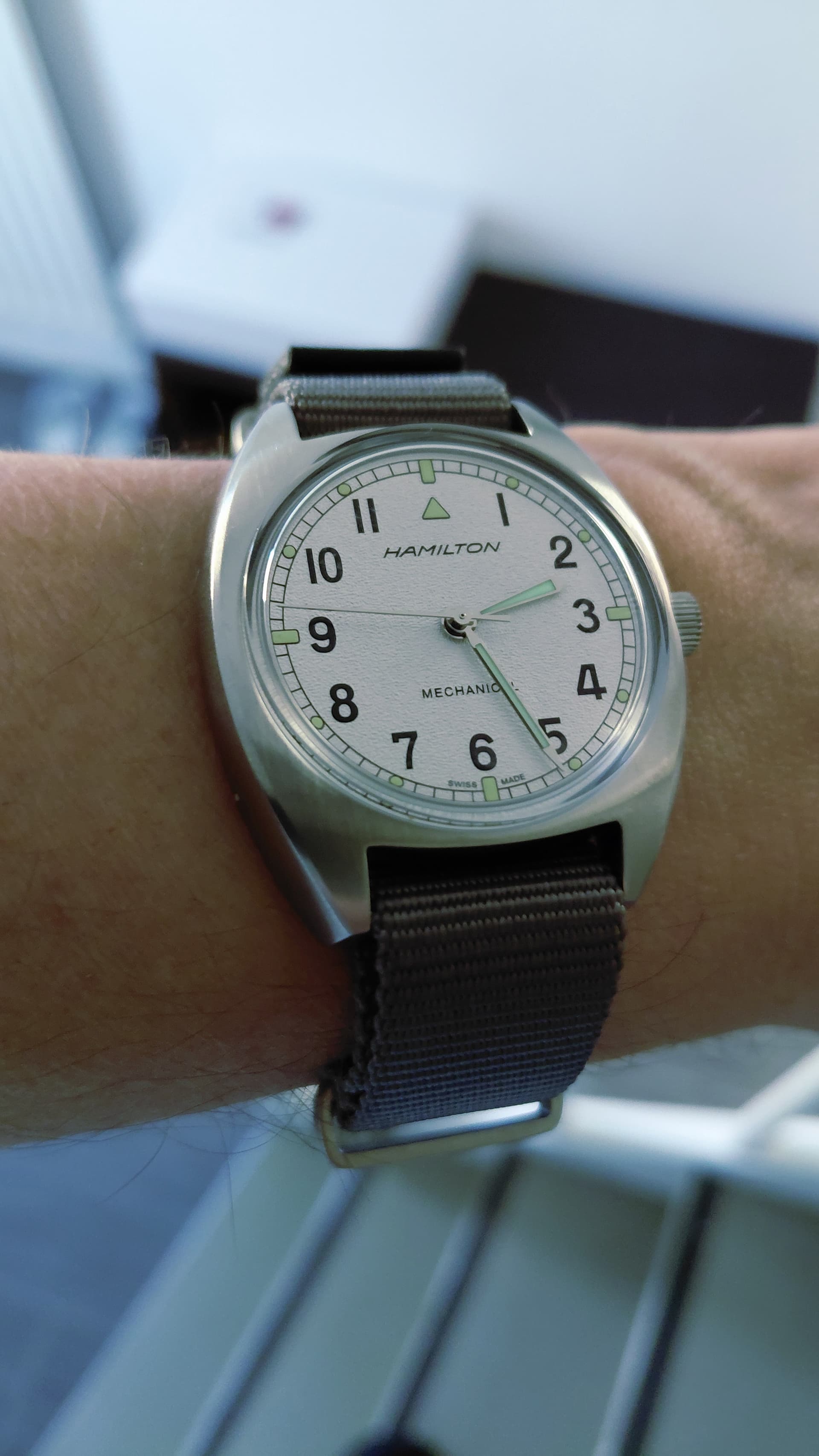 - Manueel opwindbaar. Ik wilde meer interactie met een nieuw horloge. En zo kwam ik weer bij Hamilton uit. Toen dit model echt volledig op mijn radar kwam en ik op verder onderzoek uitging kreeg ik steeds meer het gevoel kreeg dat dit heerlijk complementair zou zijn aan mijn Khaki Field automatic 38mm met zwarte wijzerplaat. Goede deal ‘grey market’ gevonden en hoppa!