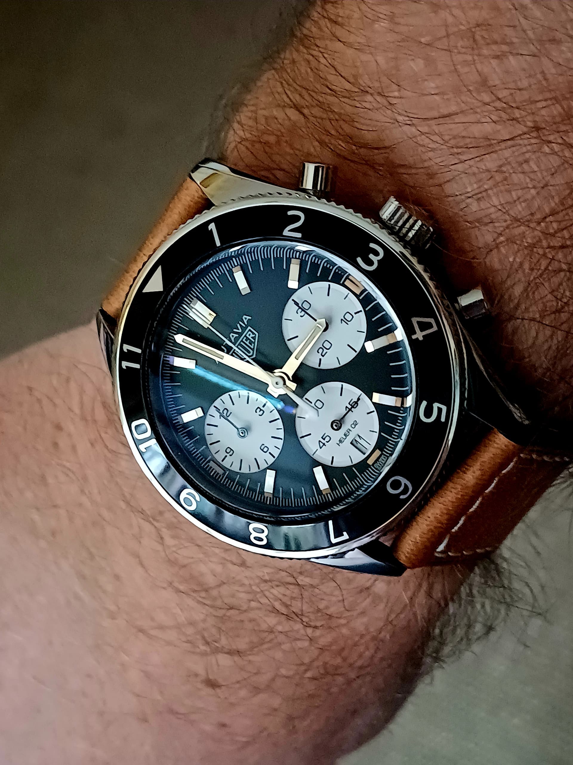 Wie mij een beetje kent, weet dat ik het merk TAG Heuer en voorganger Heuer een warm hart toedraag. Ik draag inmiddels ook al zo’n dertig jaar (vooral duikers)horloges van dit merk. Maar deze NA is speciaal voor mij. Al heel lang loer ik naar een mooie mechanische chrono, van mijn favoriete merk. Hierbij had ik een lichte voorkeur voor een automaat, omdat Heuer ooit, samen met Breitling en Hamilton (in het ‘Project 99’), aan de wieg stond van de ontwikkeling van de automatische chronograaf, in 1969 (de Chronomatic horloges).