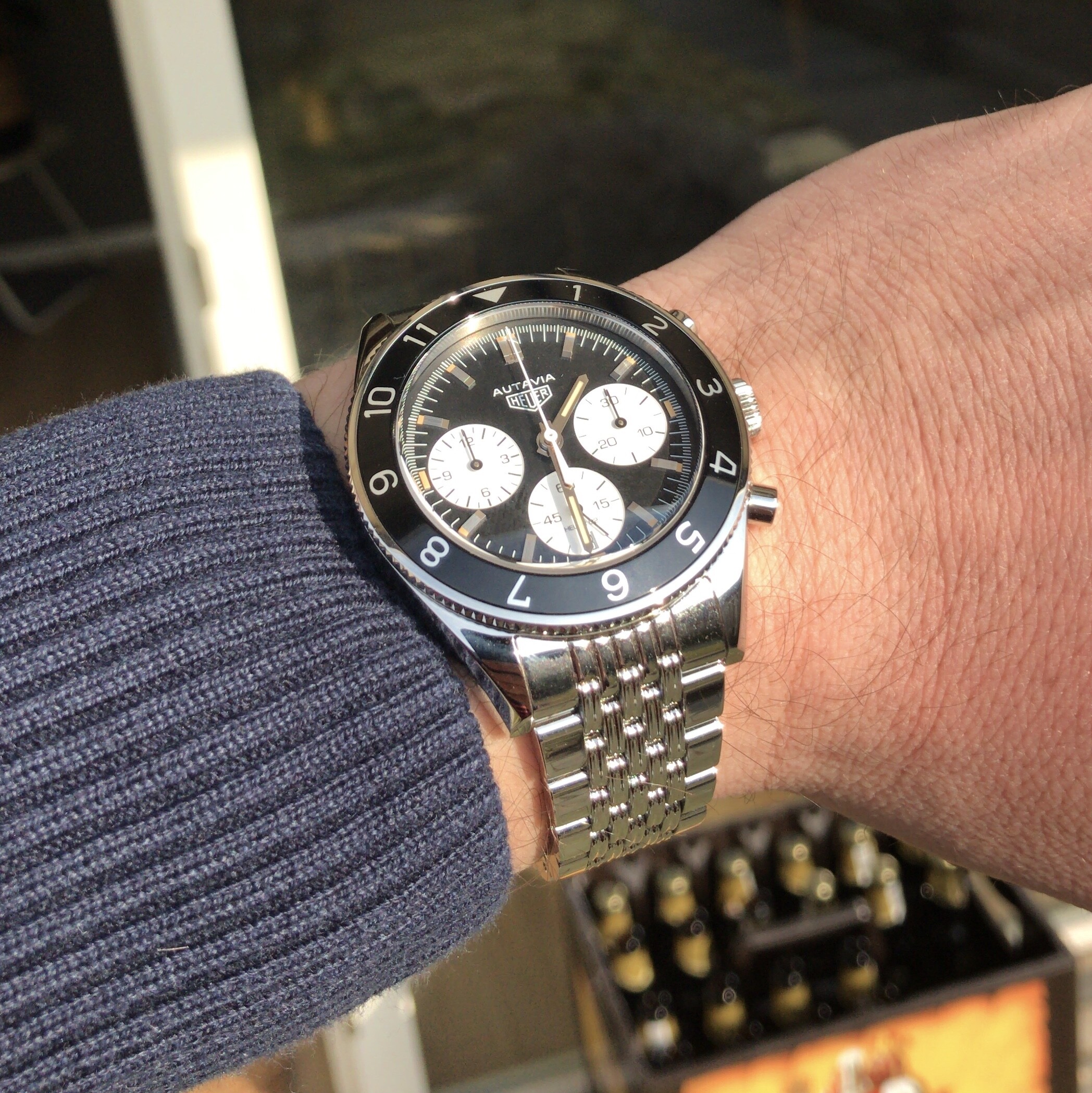 Thanks, Chris! En ja, goede vraag. Het blijft natuurlijk, zeker ook voor mij, een emotiegedreven hobby, met soms wat (semi-)verstandelijke overwegingen. Heel lang ben ik helemaal gefocust geweest op de glassboxserie. Maar, ik heb natuurlijk al een 39mm driewijzer Carrera. Dus daar zou sowieso wat overlap zijn én meer recent ben ik -weet ook niet precies waarom- erg geïnteresseer geraakt in Autavia’s. Ik dacht eerst dat ik een vintage exemplaar wilde. Maar toen kwam ik deze CBE2110 op het spoor, die voor mij toch wel belangrijke voordelen heeft van lekker zorgeloos en robuust. Op ongeveer dat moment kwam ik er eentje bij Juweelwinkel tegen; een superstrakke, met garantie, voor een prima prijs. En toen vielen voor mij opeens de puzzelstukjes op hun plaats. Tja, beter kan ik het niet uitleggen.