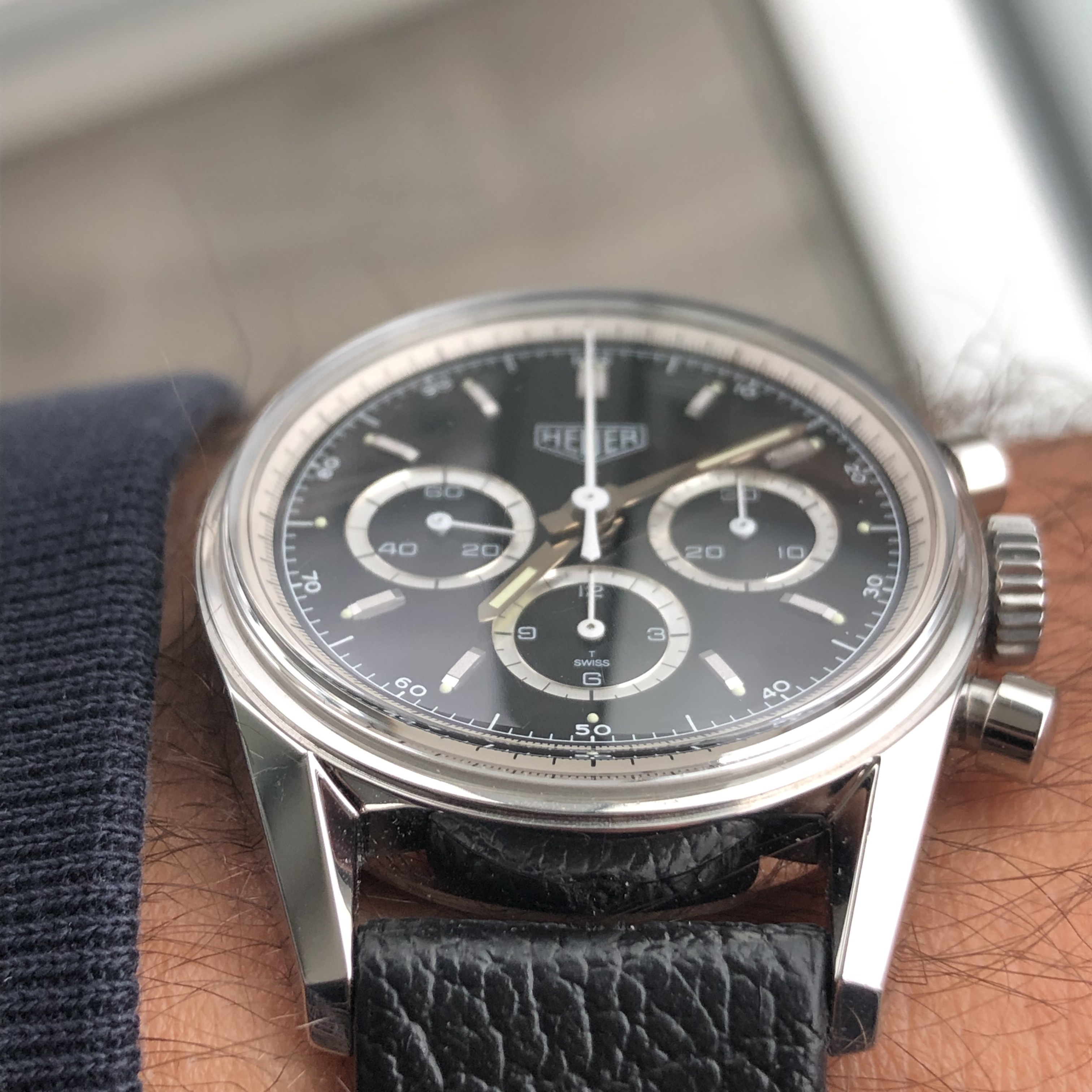 Die re-editions zijn prachtig! Een Heuer Carrera zoals het hoort, niet teveel franjes en een mooie maat