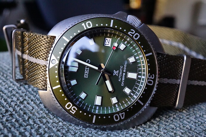 Ho ho… mijn vrouw vond m’n SPB153 horloge veel mooier dan de huidige SPB317, maar ze vond alleen dat Groen-op-groene-NATO een tandje te veel boswachter werd. Op Mesh of zwarte NATO war alles gut.