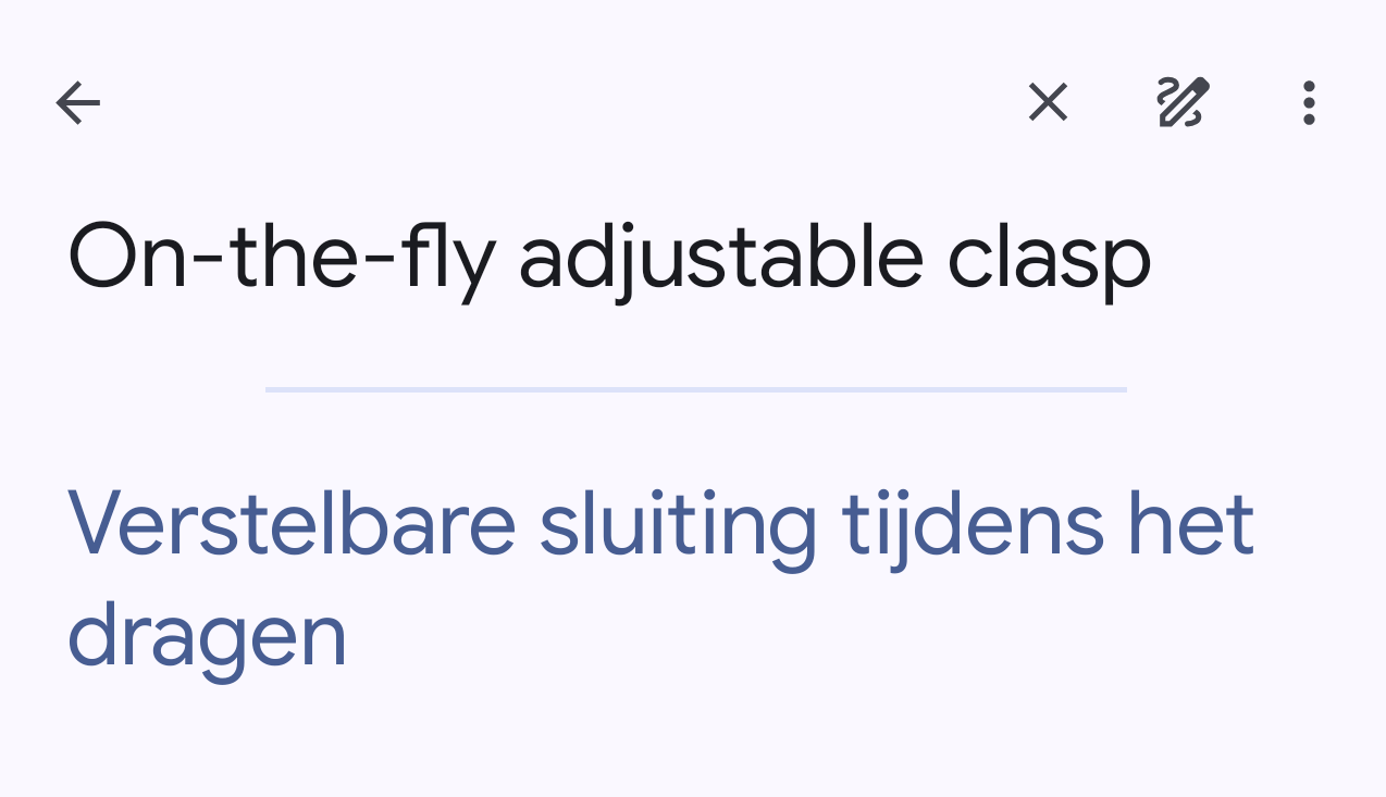 “on the fly clasp” slaat helemaal nergens op hoor. Er is geen enkel Engels of Chinglish dialect waar dat een zinnige betekenis heeft. Je mist nog een “adjustable” ergens, wat een cruciaal deel is om de uitdrukking inhoud te geven.
