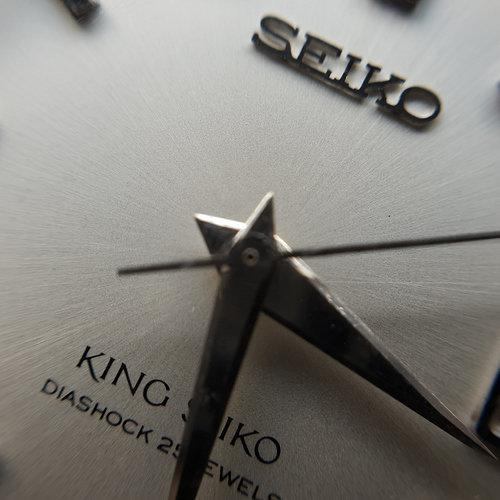 In de vorige foto’s werd al een tipje van de sluier opgelicht maar er is nog een element dat er voor mij uitspringt, en het is typisch King Seiko: de wijzers. Haar- nee, mésscherp en daardoor een lust voor het oog.