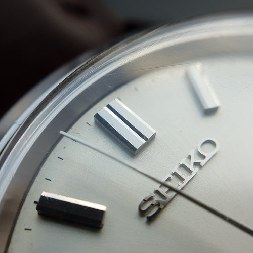 Dit exemplaar is ook gezegend met een gemerkte kroon, iets waar het mijn Lord-Matic bijvoorbeeld aan ontbreekt. Het opschrift ‘SW’ staat voor ‘Seiko Waterproof’ en heeft betrekking op de constructie van de kroon. De kroon is overigens correct bij dit model; er hoort geen ‘KS’ kroon op.