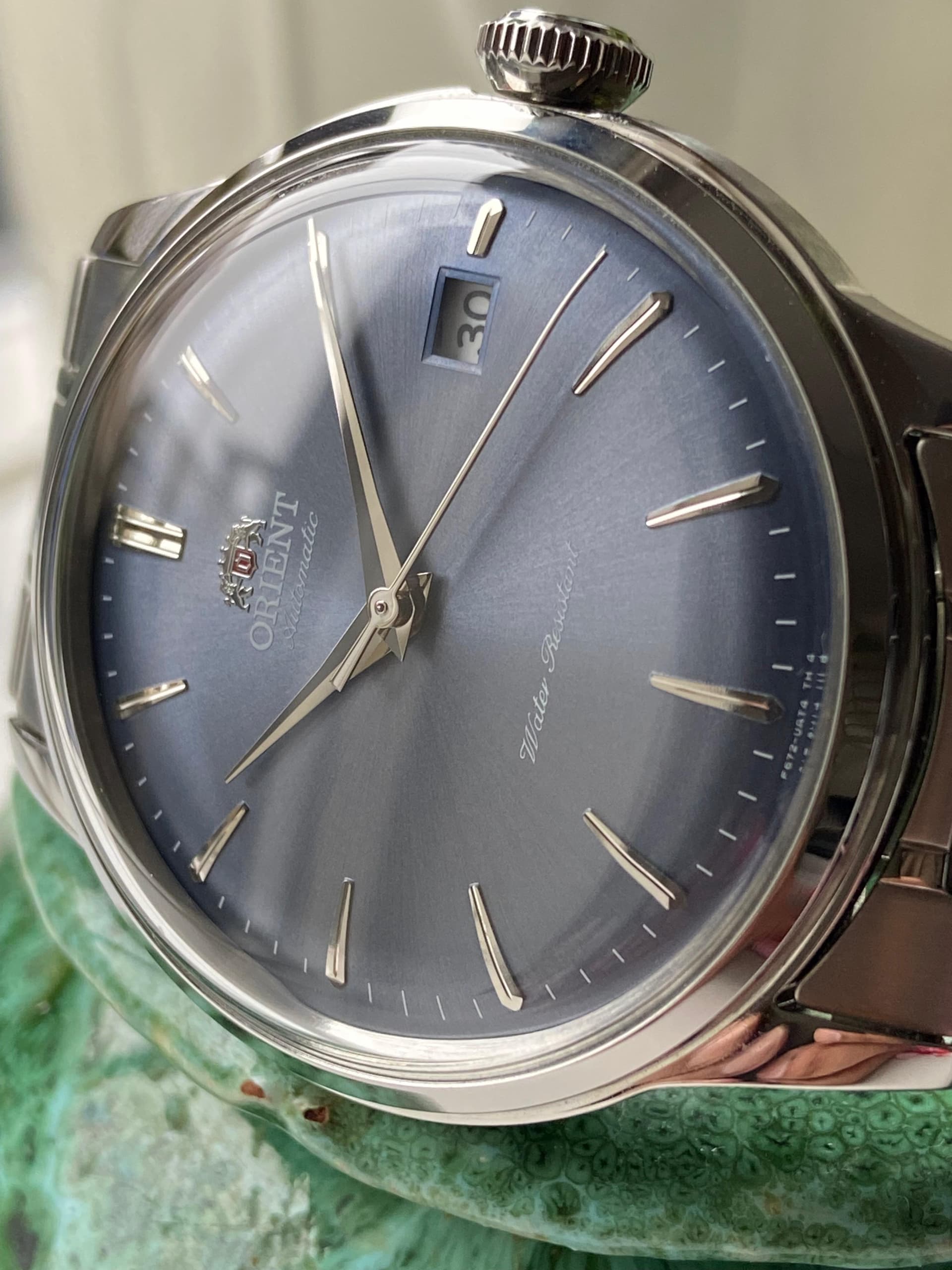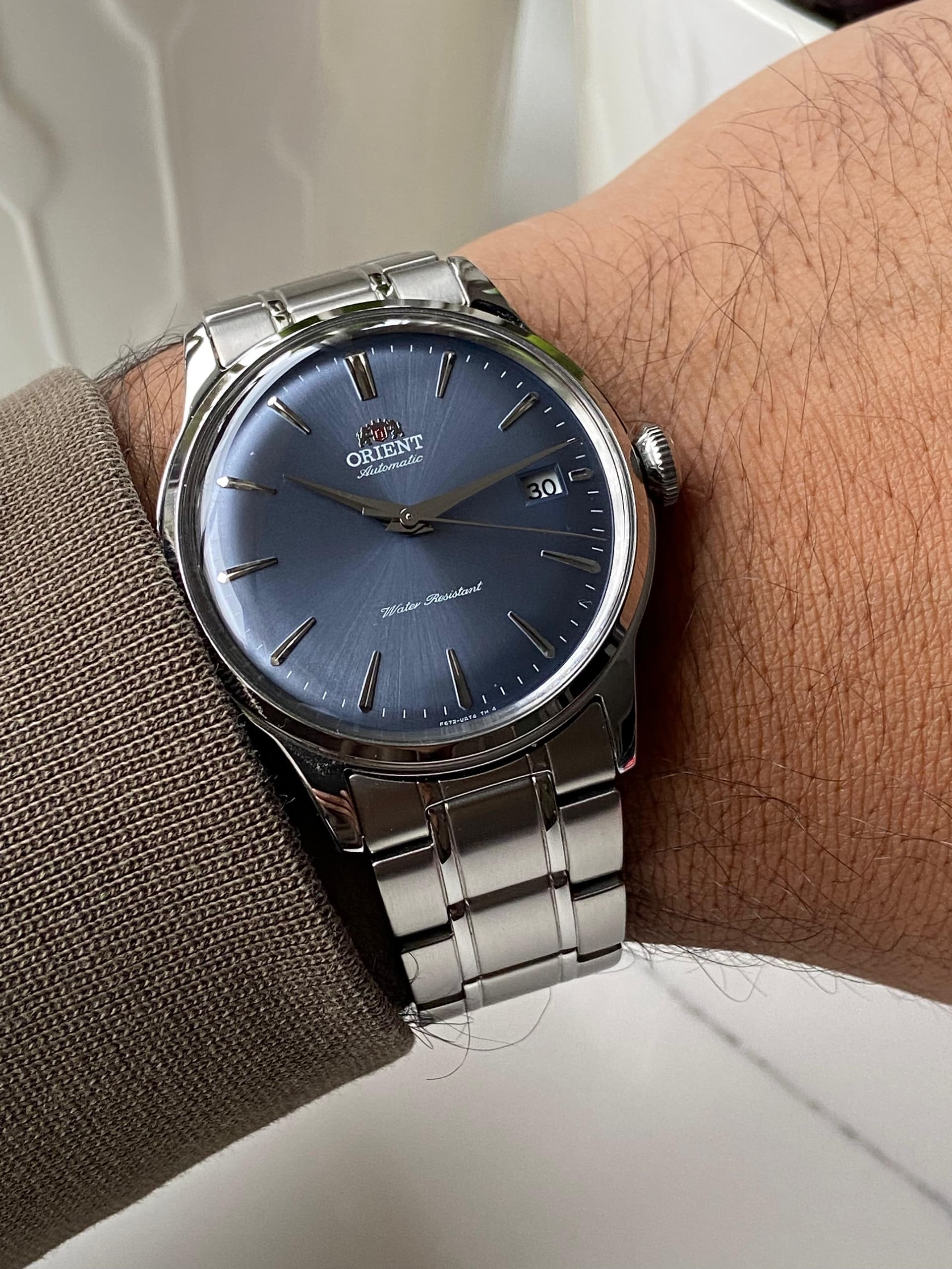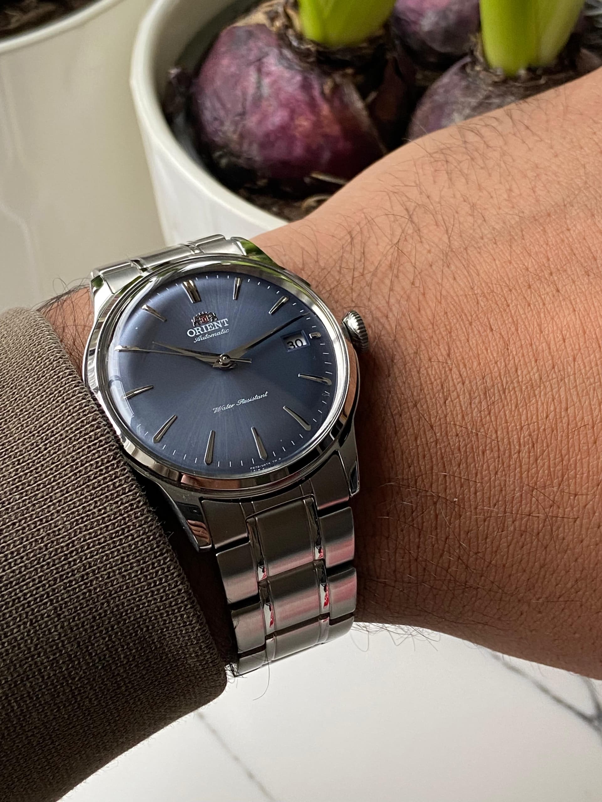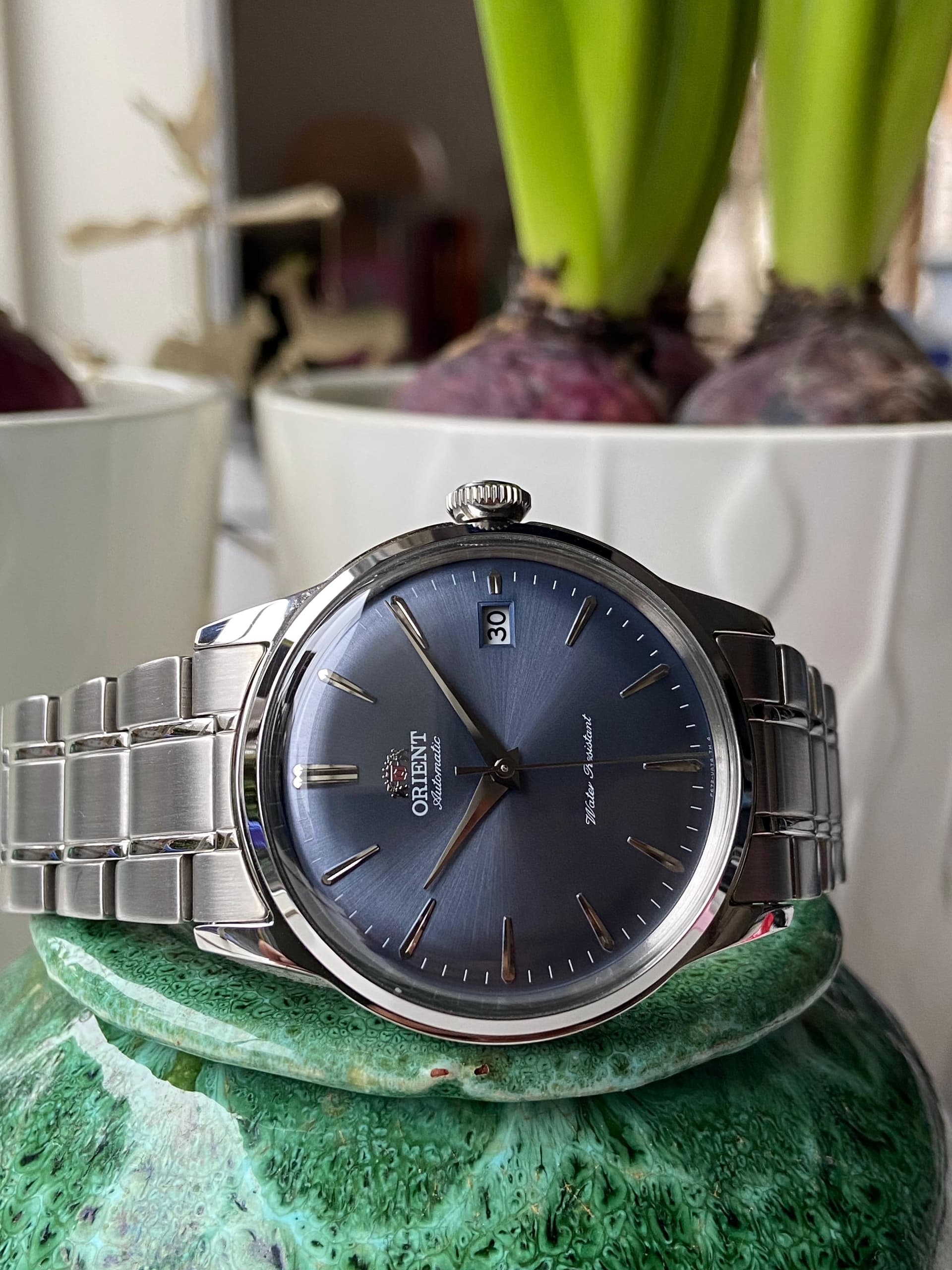 Oké, terug naar mijn verhaal. Mijn oog is gevallen op de Oriënt Bambino, een echte klassieker onder de automatische dresswatches. Oriënt maakt zijn horloges volledig zelf en is onderdeel van Seiko Epson, dus je krijgt kwaliteit uit een huis met ervaring en traditie.