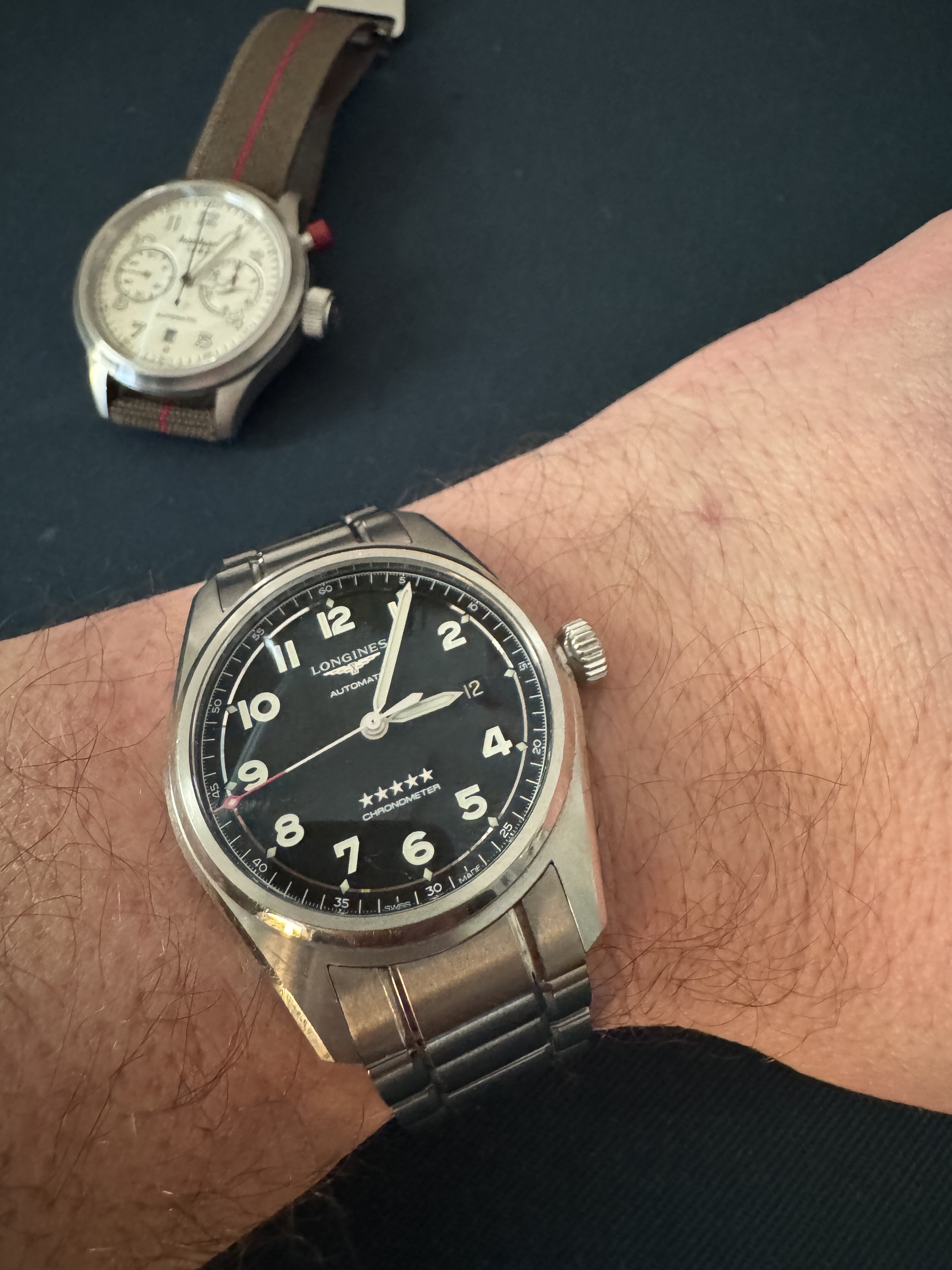 Om met de Longines Spirit te beginnen. Ik vind dat gewoon een schitterend horloge (afhankelijk van het licht soms ook letterlijk). Erg functioneel, weinig poespas, draagt makkelijk (ondanks dat het de titanium versie niet is), past bij elke gelegenheid en tegelijkertijd straalt het kwaliteit uit. Op de één of andere manier blijf ik er ook naar kijken. Prachtig in al zijn eenvoud!