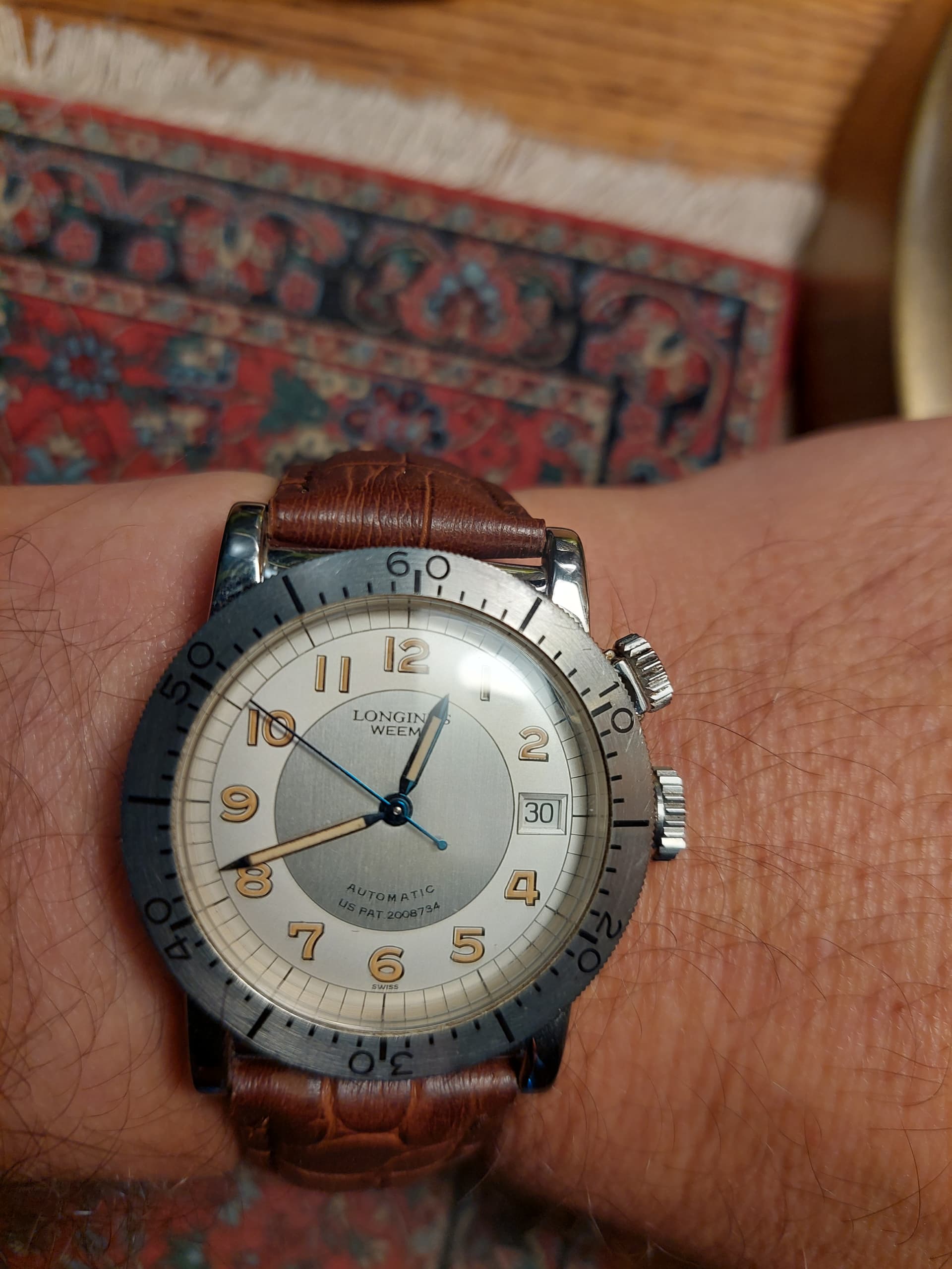 Longines heeft hem wat meer van deze tijd gemaakt door een automaat met datum in een 36mm kast te plaatsen. Ik ben er erg mee in mijn nopjes.