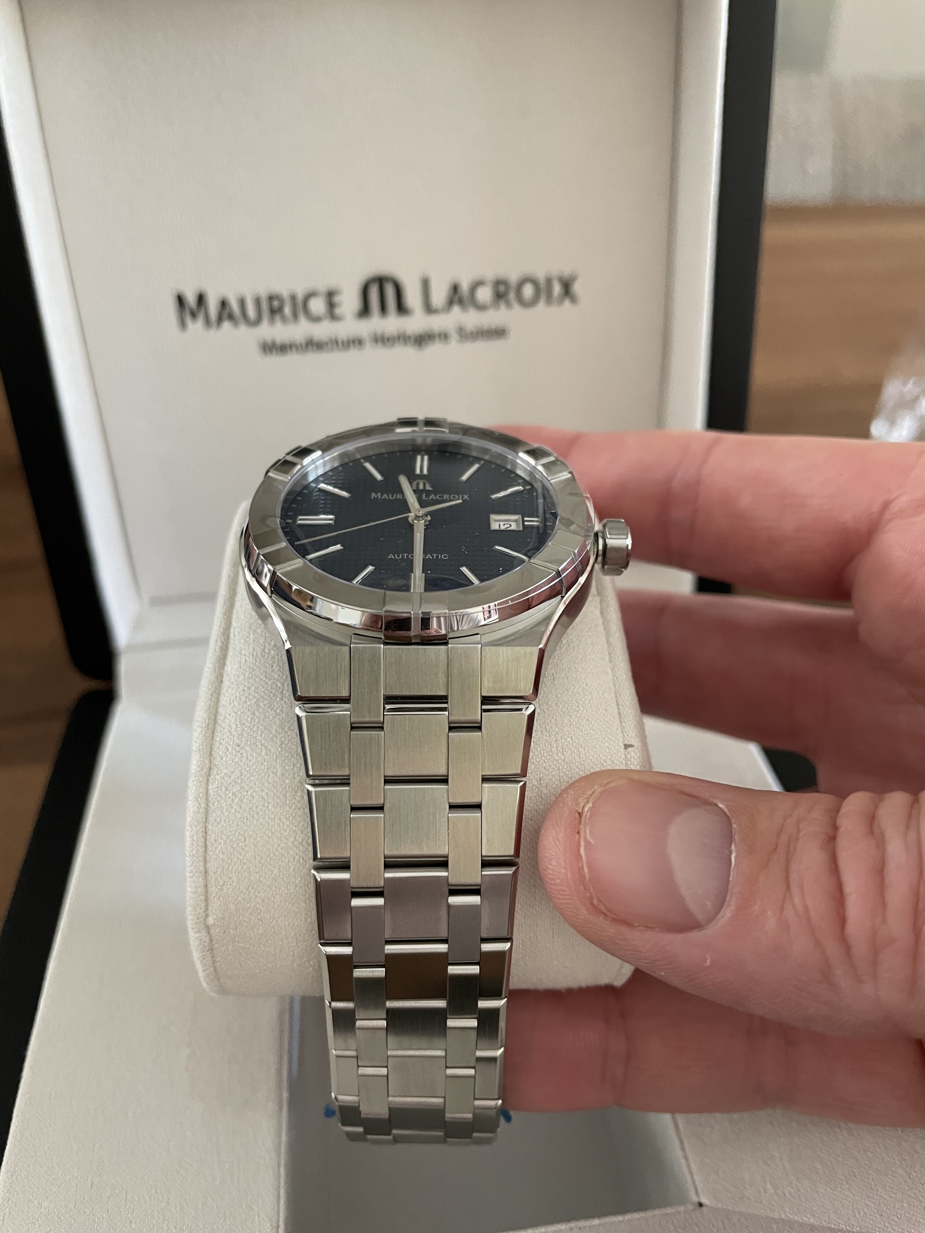 In eerste instantie wilde ik voor de antraciete gaan in 39 mm wat eigenlijk beter bij mijn kippen polsjes zou passen maar nadat ik ze gepast had kwam ik tot de conclusie dat ik simpelweg van wat grotere horloges om m’n pols houd. Daarnaast sprak de blauwe me in het echt ook veel meer aan dus de blauwe 42 mm is het dan ook geworden.