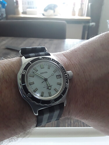 De bezel heeft hij er ook zelf opgezet. Dus eigenlijk een hele SE in een andere kast (uiteraard een originele Vostok Amphibia optie). Dus dat…