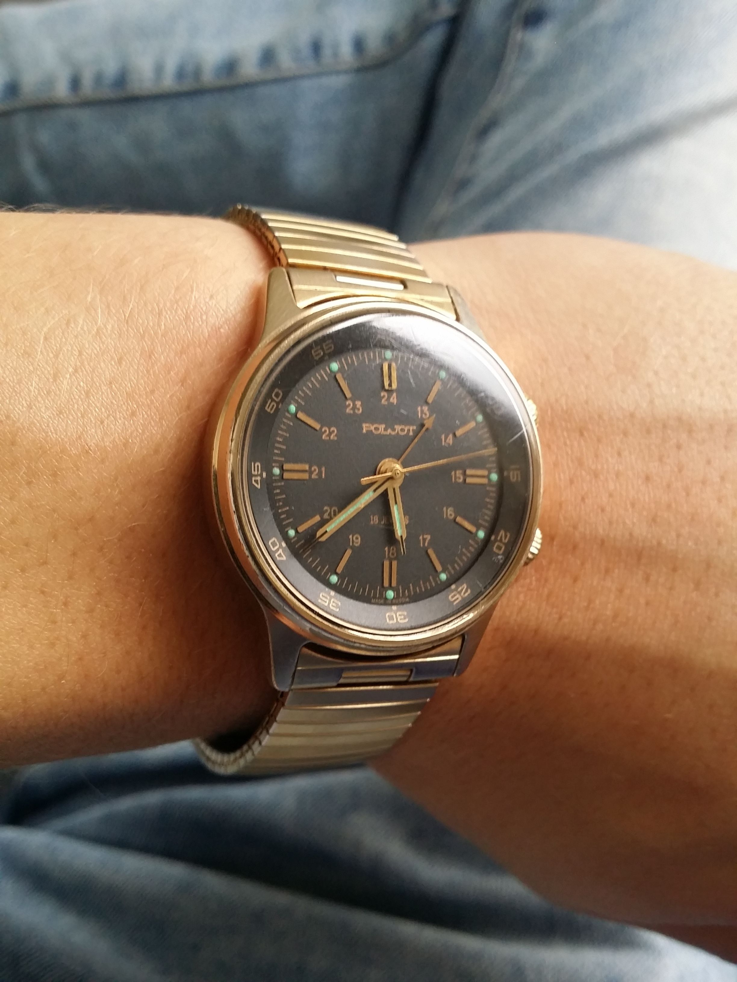 Prachtig horloge, ik denk ergens geproduceerd begin jaren 90 en voorzien van het Poljot kaliber 2612. Dat uurwerk werd al vanaf de eerste Poljot alarmhorloges gebruikt en is eigenlijk nooit gewijzigd.
