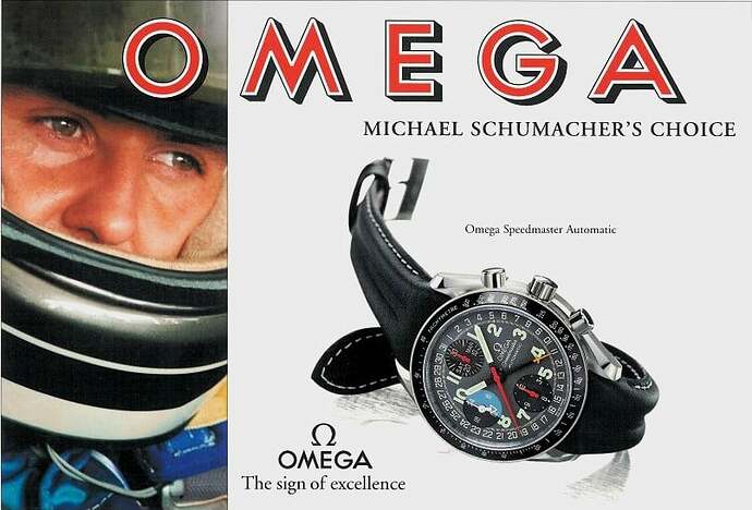 Speedmaster MK40. Ook wel bekend als de ‘Schumacher’ omdat ze samen in advertenties te zien waren. Zelf nog geen foto van MSC met de mk40 kunnen vinden.