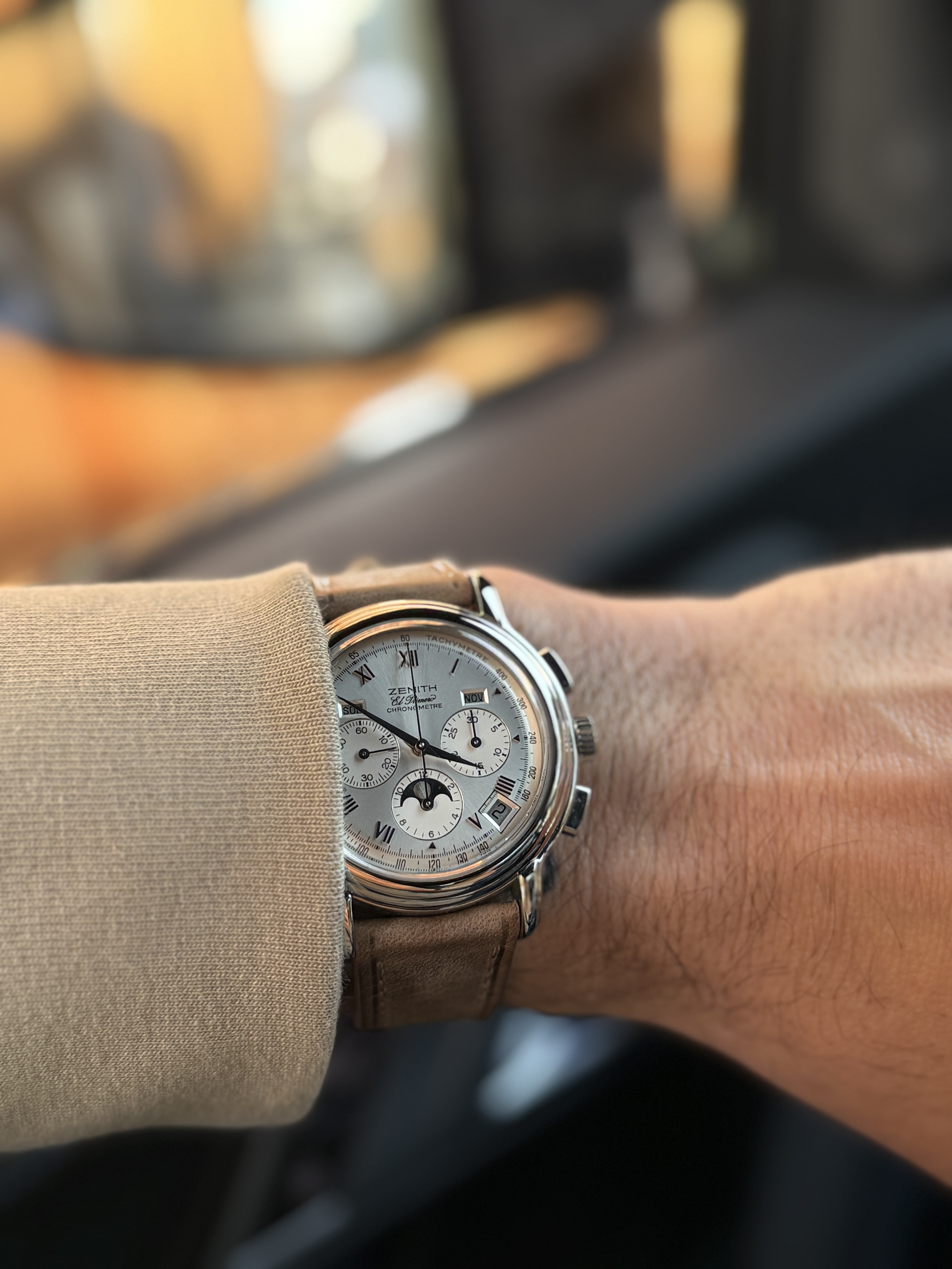 feitelijk een sportieve chrono maar door het leder en de zilveren plaat kan hij wel als dresser gebruikt worden ![]()