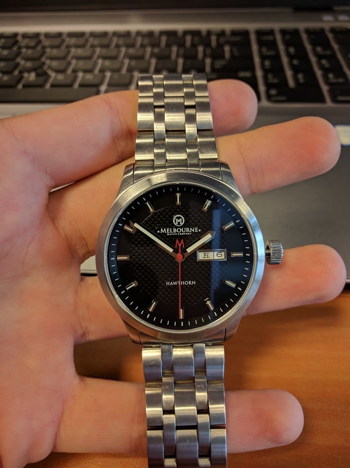 En dat kan best kloppen. De Melbourne Watch Company is een micro-brand dat gevestigd is in Australië. Middels een kickstarter actie hebben zij de Hawthorn weten te bekostigen. Het bedrijf is nu up and running en verkoopt ook meerdere modellen, maar helaas de Hawthorn niet meer. Dus mocht je toch interesse hebben in dit model, zou je hiervoor toch voor tweedehands modellen moeten settelen. Dit scheelt echter wel in de prijs. Toen de Kickstarter actief was kon je de set met horloge en stalen band voor pakweg €300,- krijgen (exclusief verzending). Echter, als je een beetje rond speurt kun je hem nu tweedehands voor rond de €175 vinden.