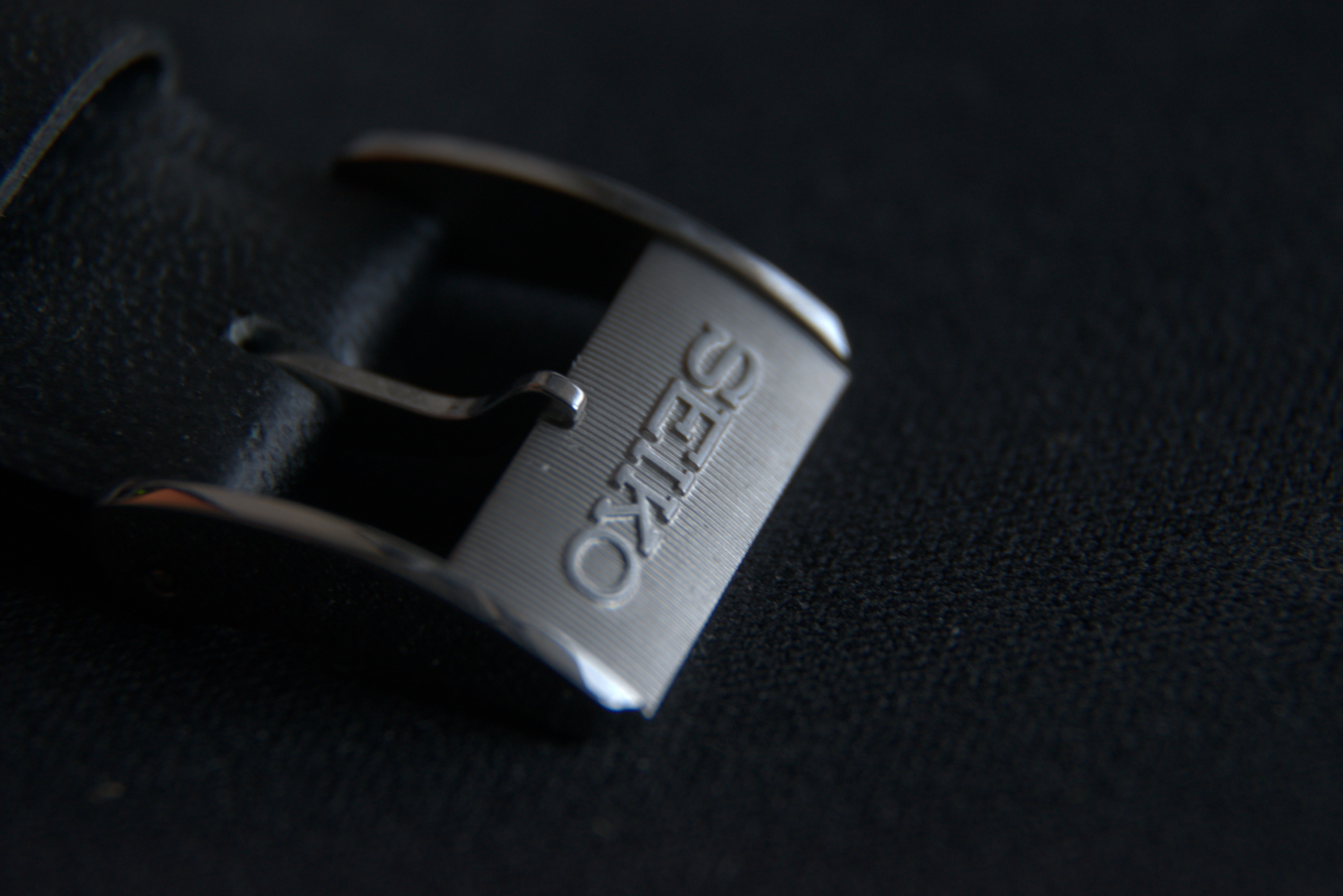 Zonder gekheid; het bandje die op het horloge zat gemonteerd bij ontvangst ziet er uit alsof het er bij hoort, maar na iets beter te hebben gekeken blijkt dit niet zo te zijn: de kast heeft namelijk een bandaanzet van 18mm, het bandje was 19mm. Verder was dit bandje wel voorzien van een Seiko branded doornsluiting van 15mm breed die er erg goed uit ziet. Het originele label wat er omheen zit is wel een erg leuke extra.